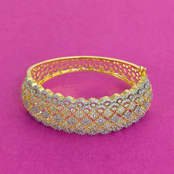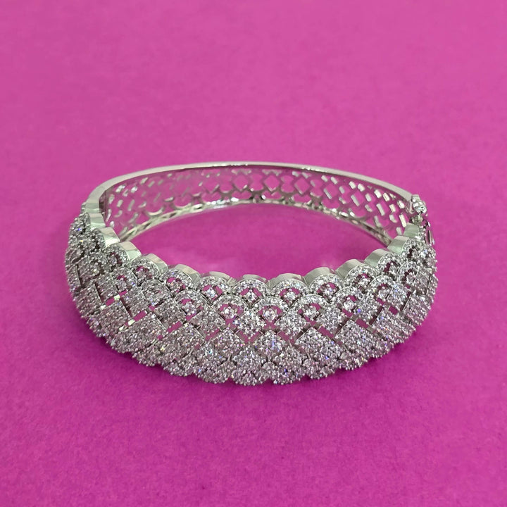 Weight: 27.0 Grams, Height = 44 mm || Width = 55 mm,Classic Kada,2 Tone Plating,Rhodium Plating,American Diamond Kada