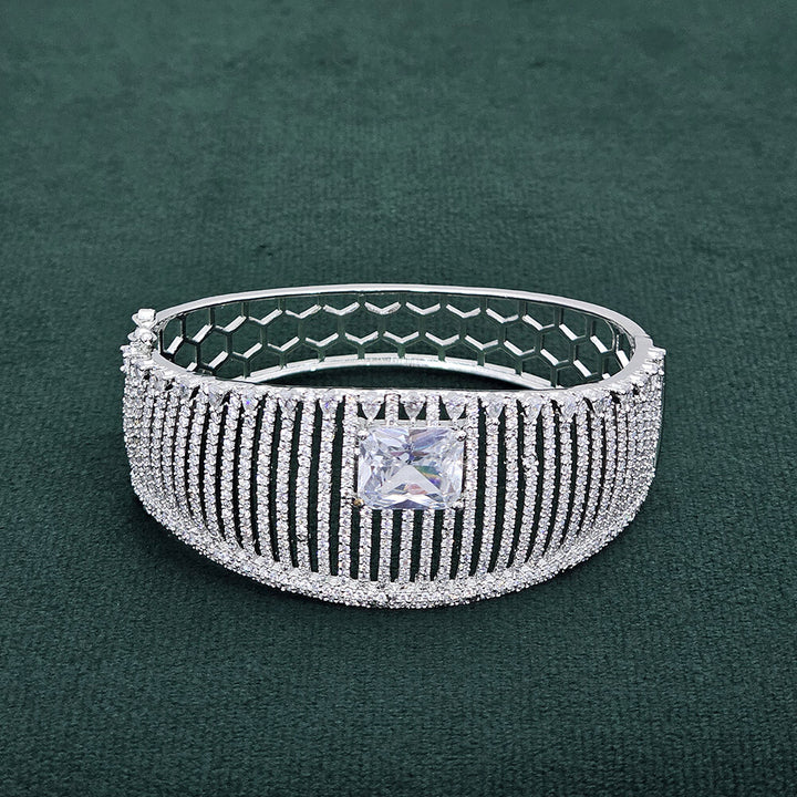 Weight: 30.0 Grams, Height = 48 mm || Width = 62 mm,Classic Kada,Rhodium Plating,American Diamond Kada