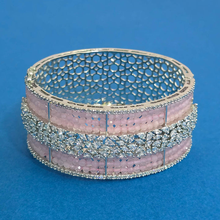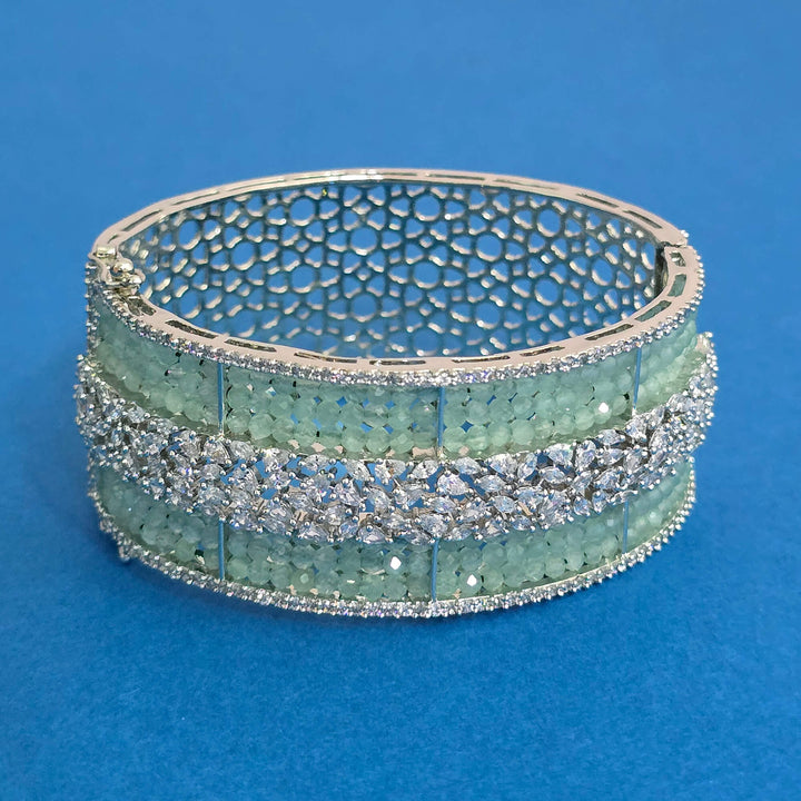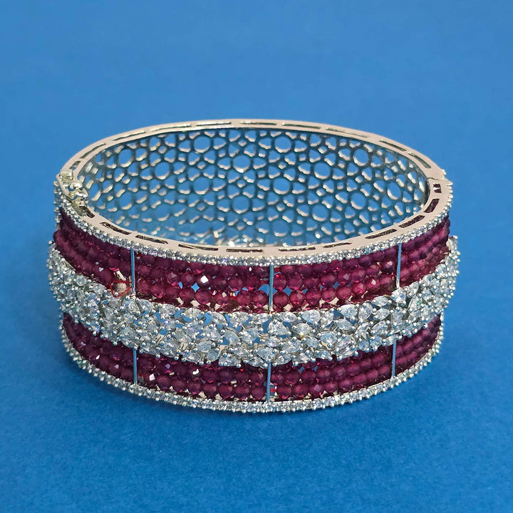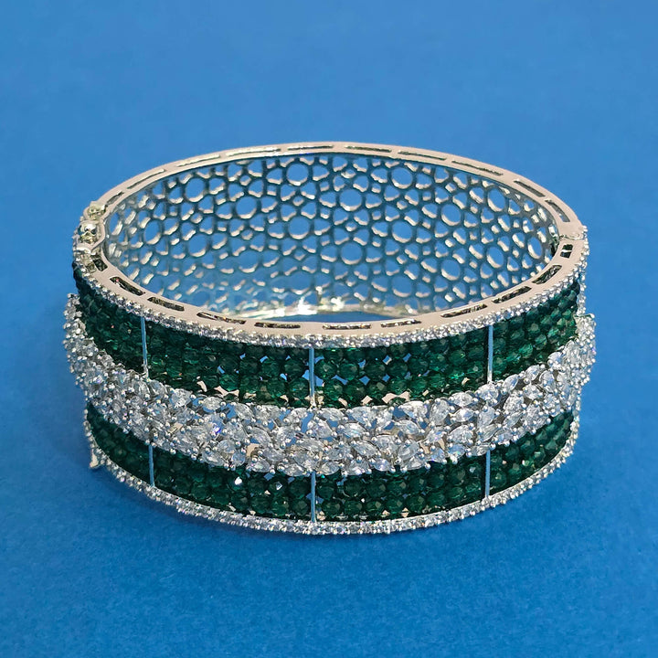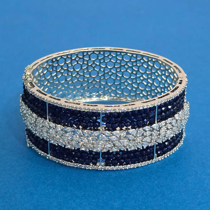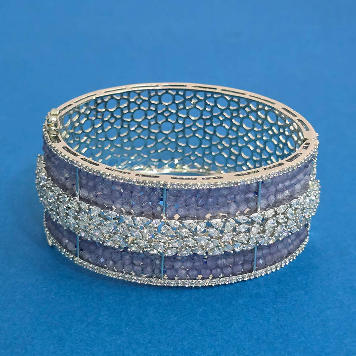 Weight: 38.0 Grams, Height = 47 mm || Width = 57 mm,Broad Kada,Rhodium Plating,American Diamond Kada