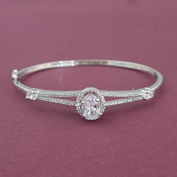 Weight: 9.0 Grams, Height = 47 mm || Width = 55 mm,Delicate Design,Rhodium Plating,American Diamond Kada