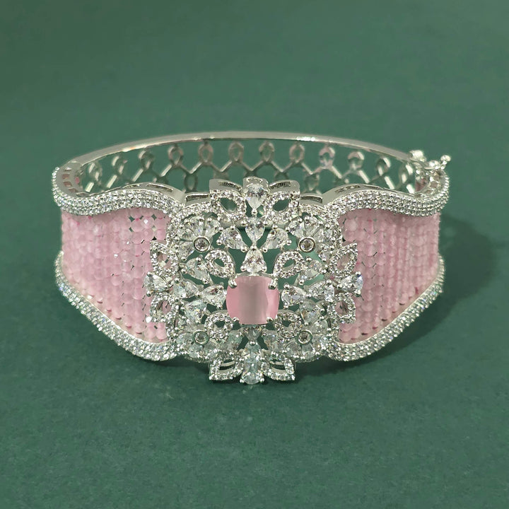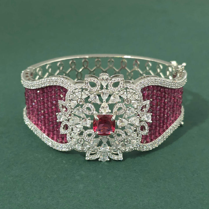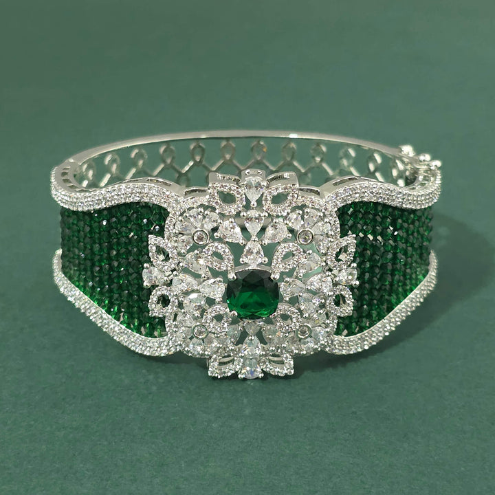 Weight: 33.0 Grams, Height = 45 mm || Width = 58 mm,Classic Kada,Rhodium Plating,American Diamond Kada