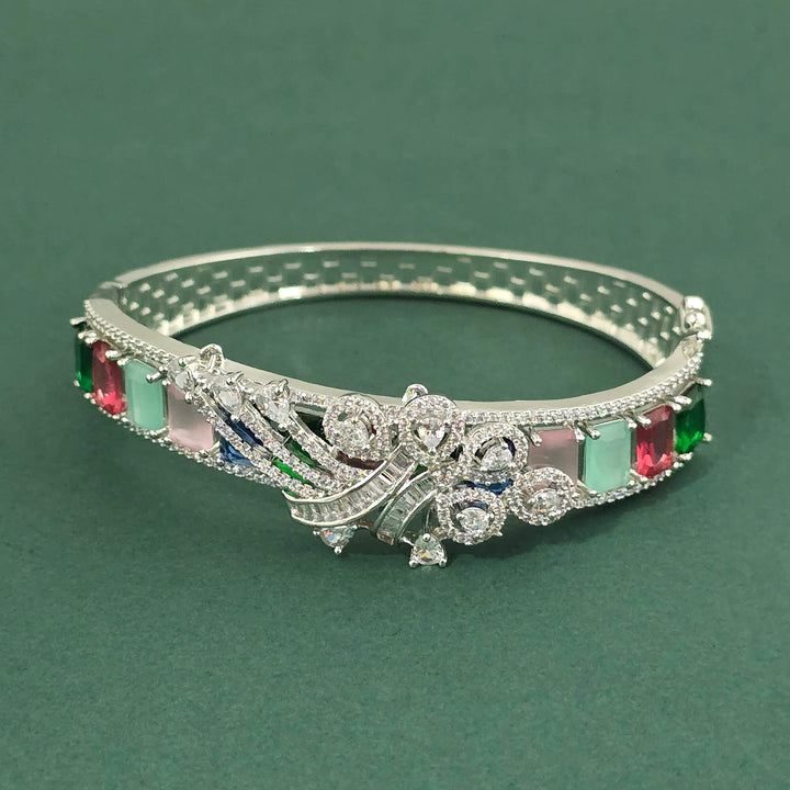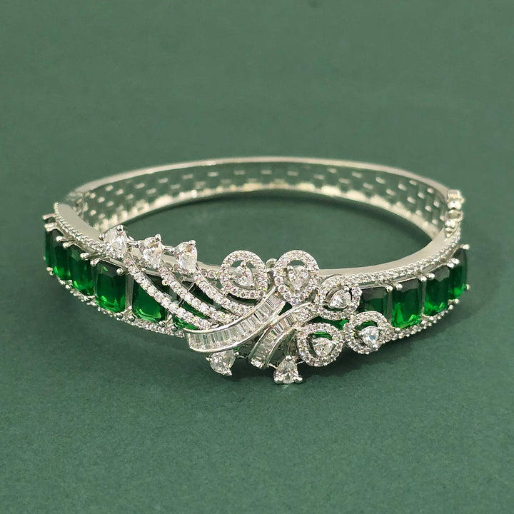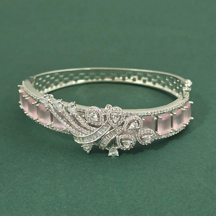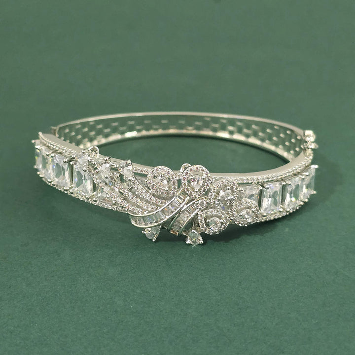 Weight: 21.0 Grams, Height = 47 mm || Width = 58 mm,Classic Kada,Rhodium Plating,American Diamond Kada