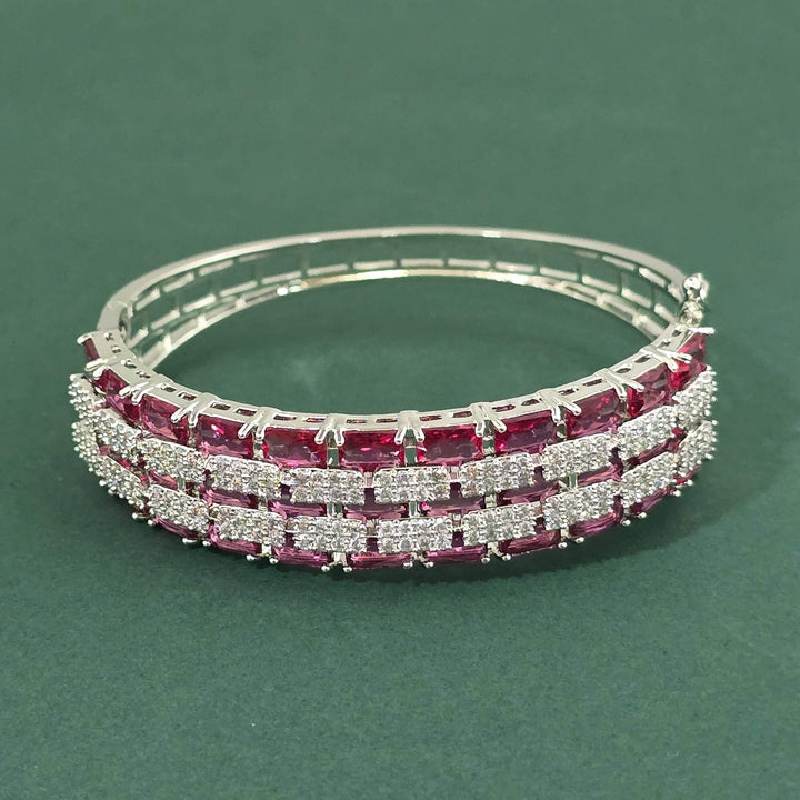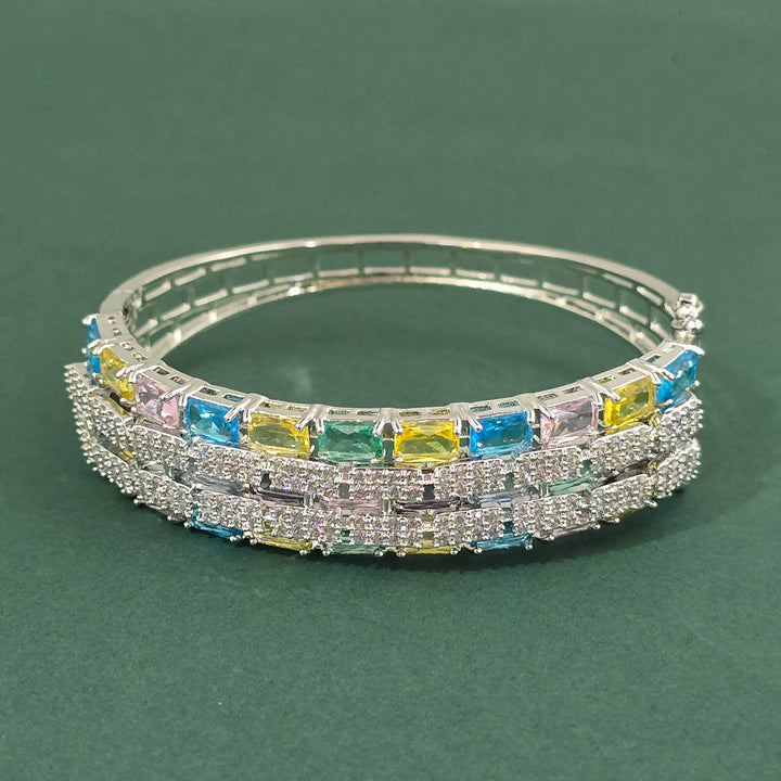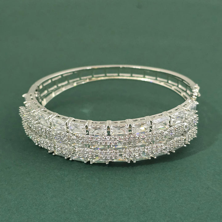 Weight: 26.0 Grams, Height = 47 mm || Width = 57 mm,Classic Kada,Rhodium Plating,American Diamond Kada