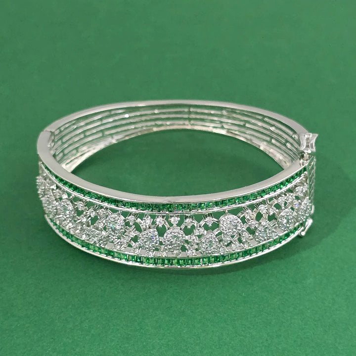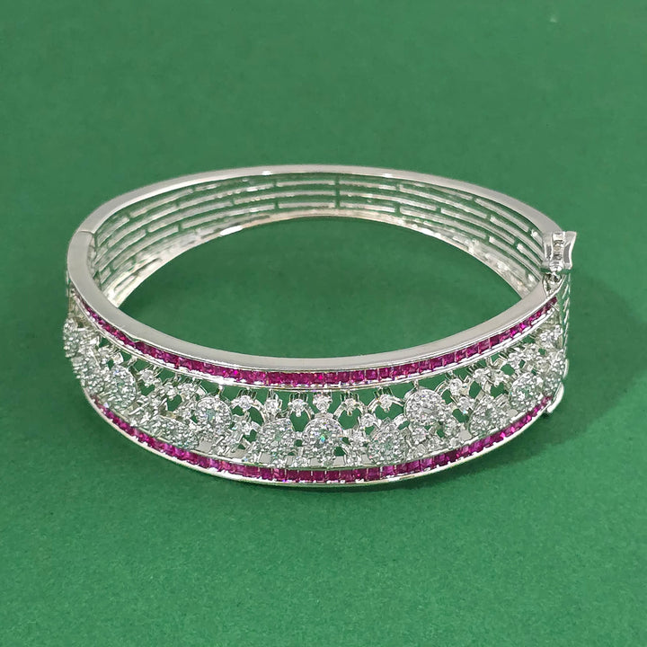 Weight: 25.0 Grams, Height = 48 Mm || Width = 57 Mm,Classic Kada,Rhodium Plating,American Diamond Kada