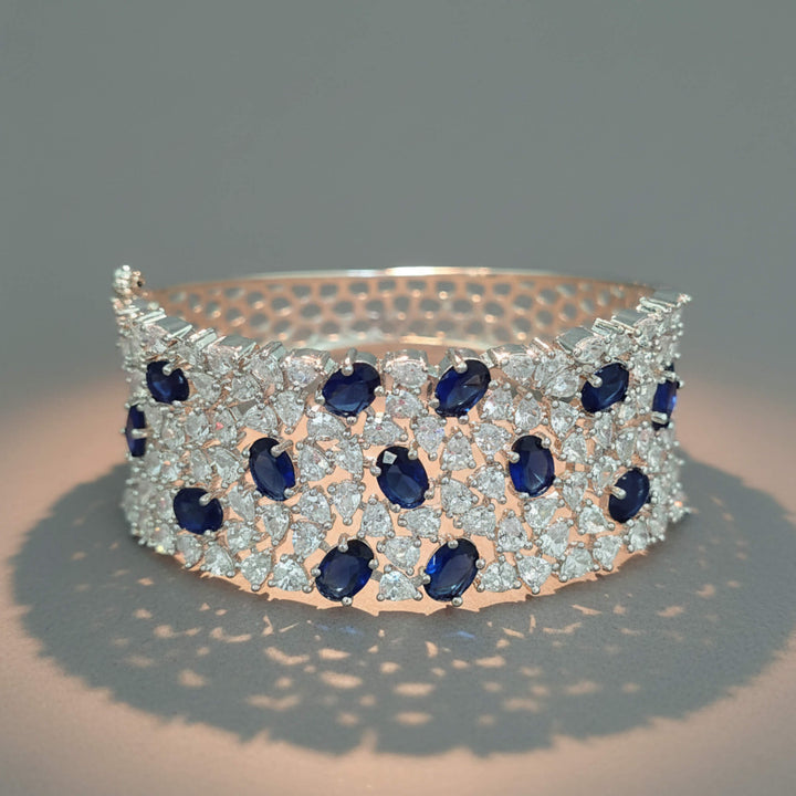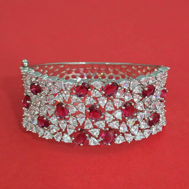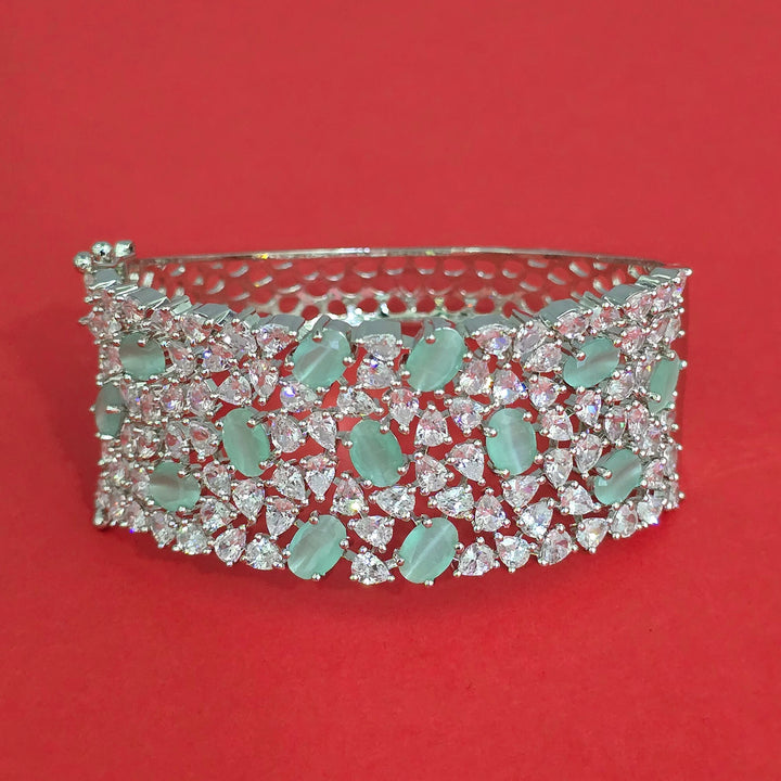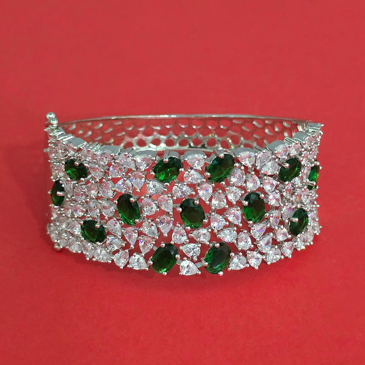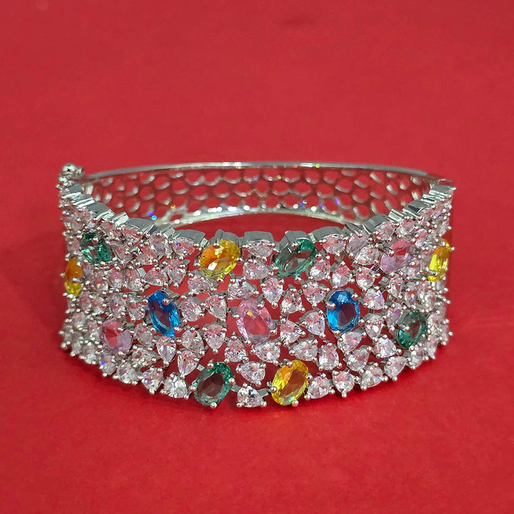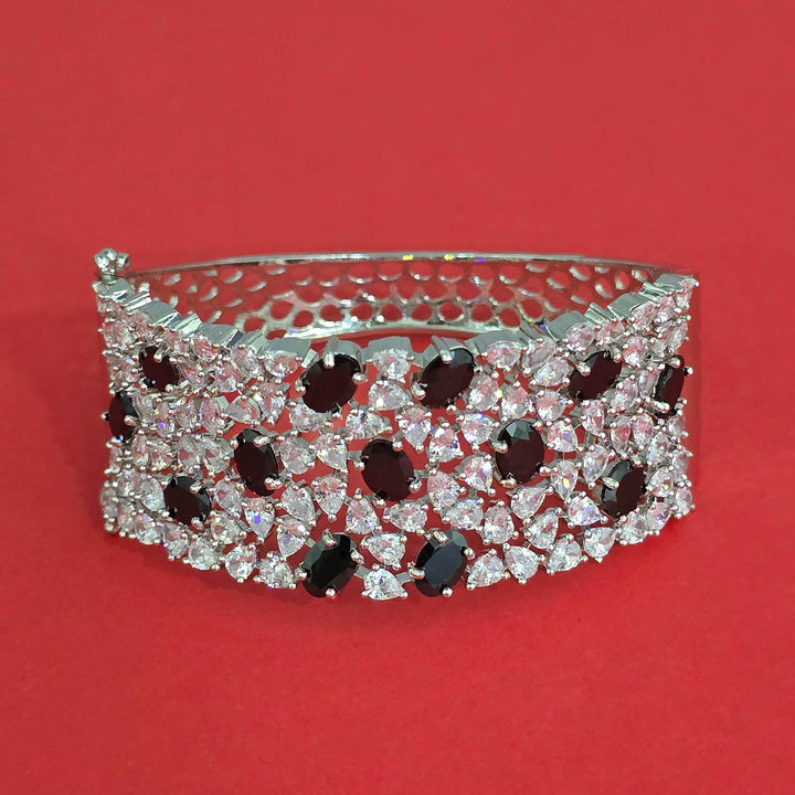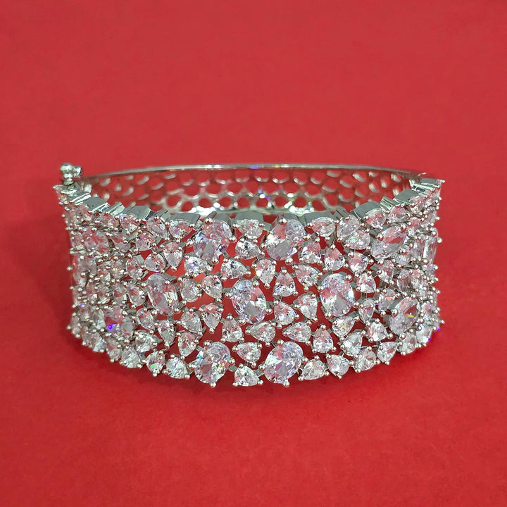 Weight: 31.0 Grams, Height = 52 Mm || Width = 58 Mm,Broad Kada,Rhodium Plating,American Diamond Kada
