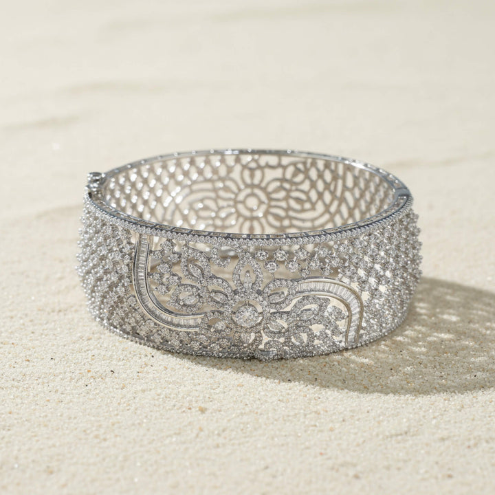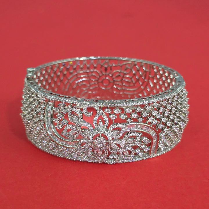 Weight: 29.0 Grams, Height = 47 Mm || Width = 56 Mm,Broad Kada,Rhodium Plating,American Diamond Kada