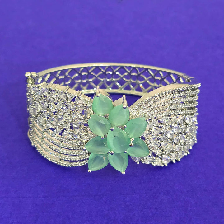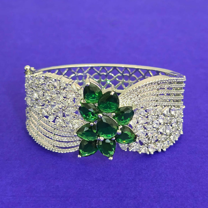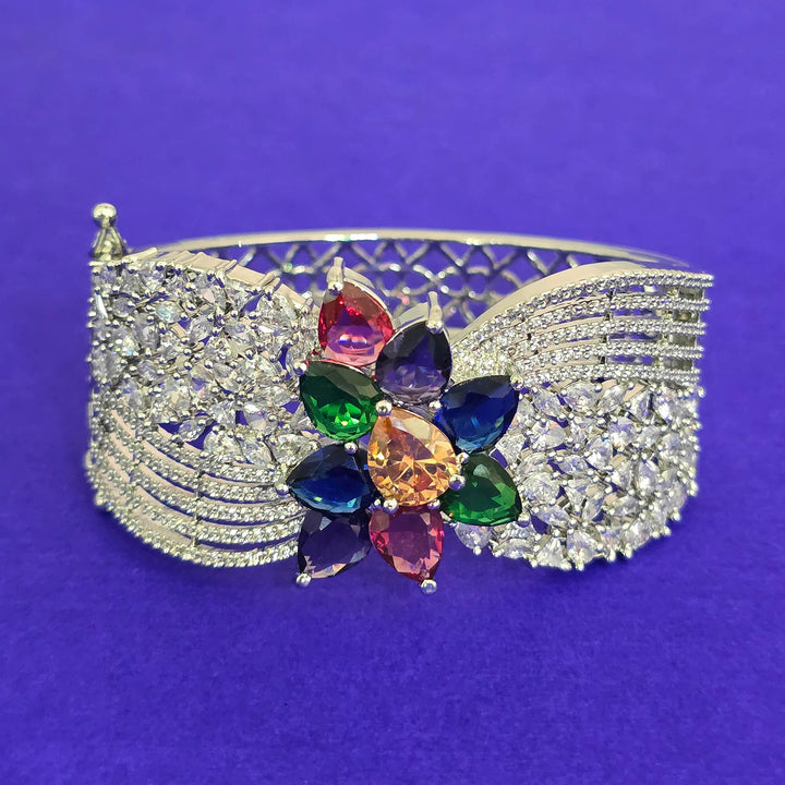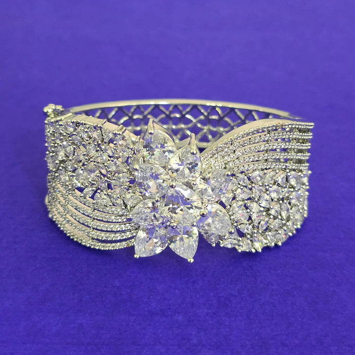 Weight: 37.0 Grams, Height = 46 mm || Width = 58 mm,Broad Kada,Rhodium Plating,American Diamond Kada,AMERICAN DIAMOND KADA