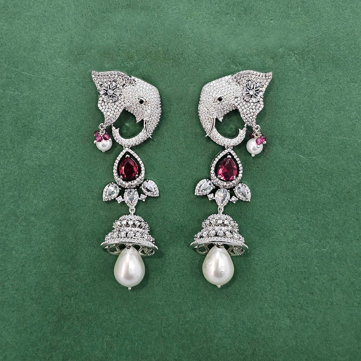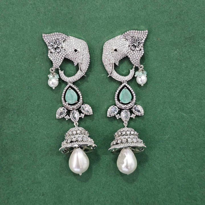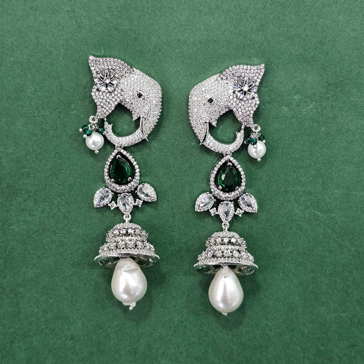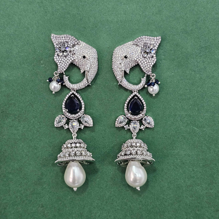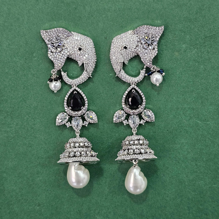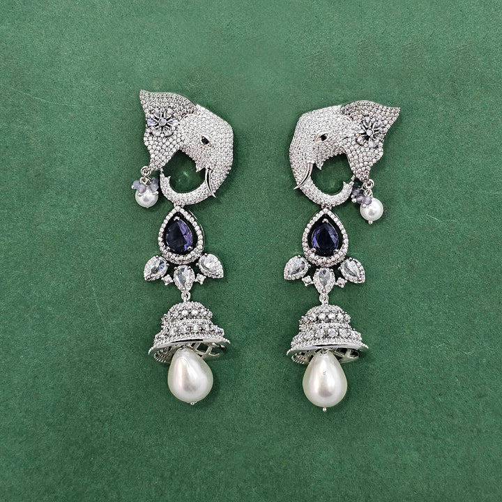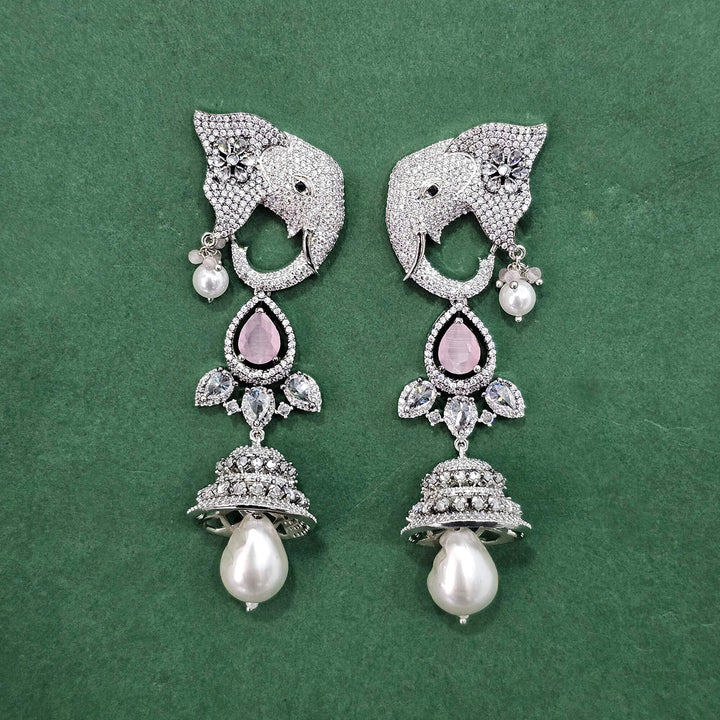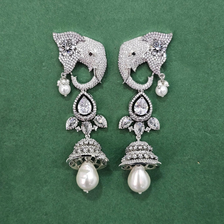 Weight: 39.0 Grams, Height = 85 mm || Width = 24 mm,Elephant Design,Rhodium Plating,American Diamond Earring