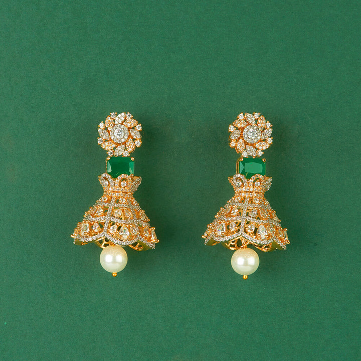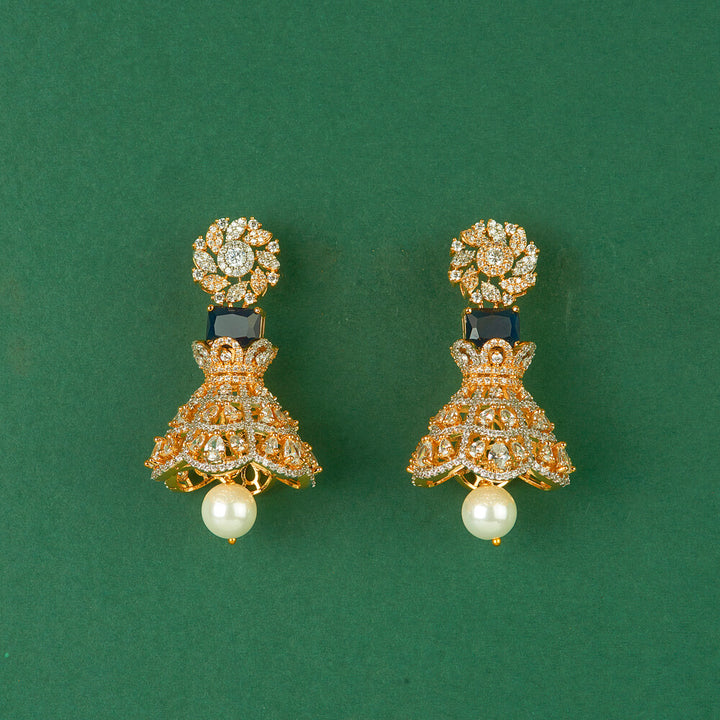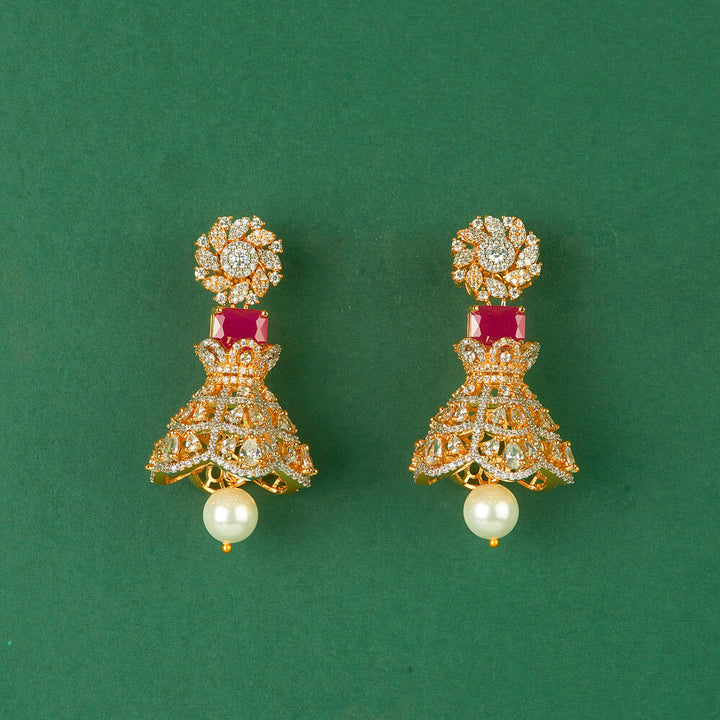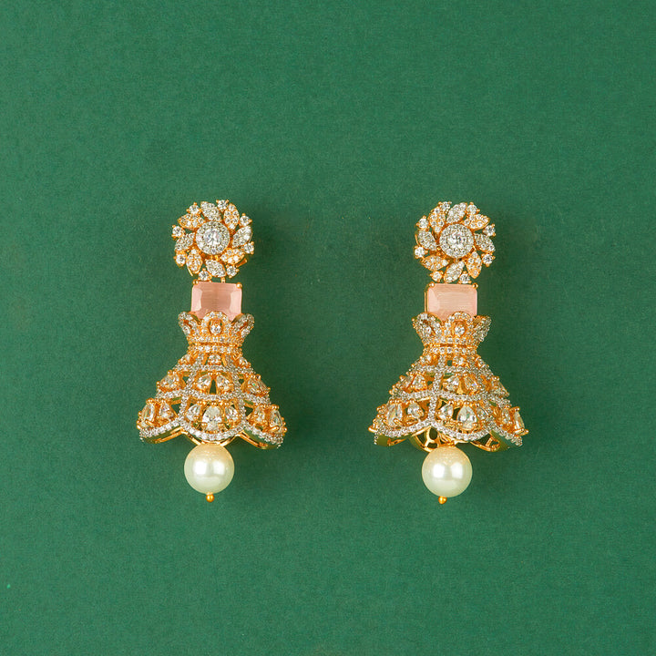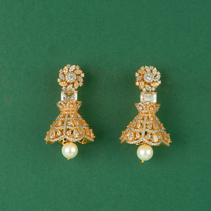 434453 Cz Pearl Jhumki With 2 Tone Plating