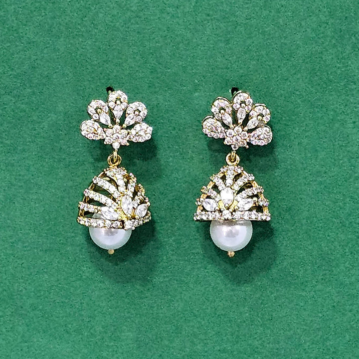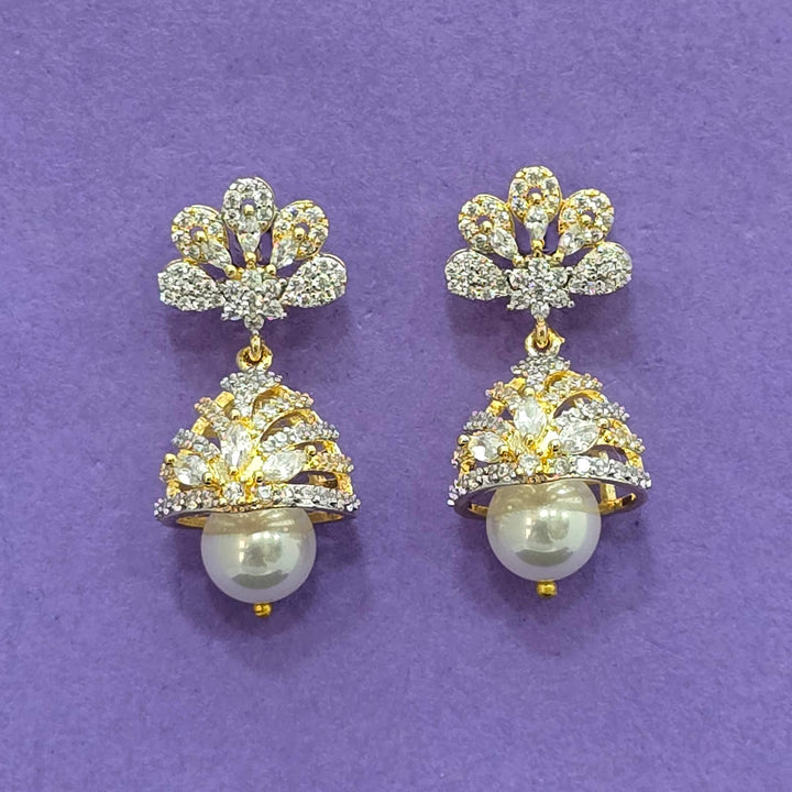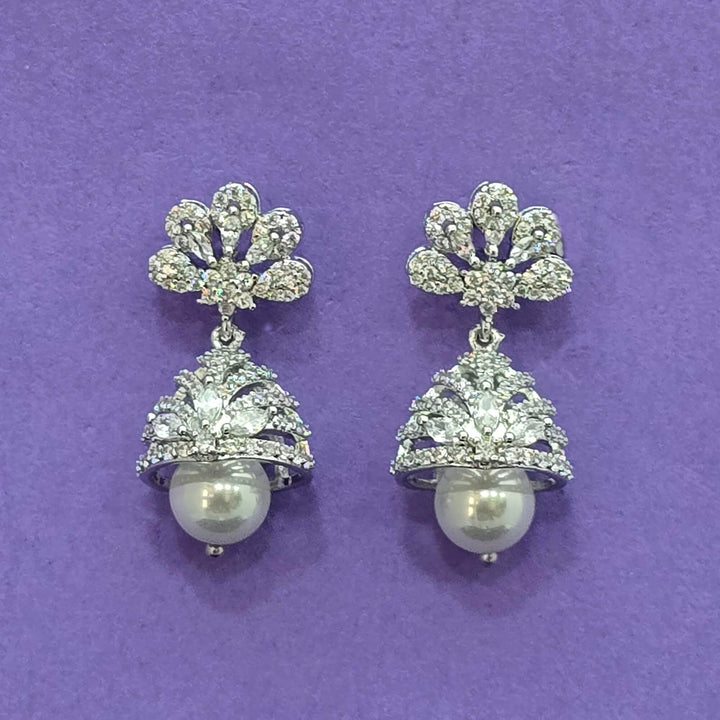 438537 Cz Pearl Jhumki With 2 Tone Rhodium Plating