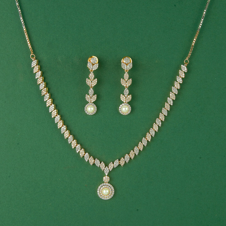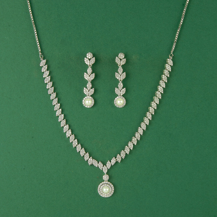 437563 Cz Pearl Necklace With 2 Tone Rhodium Plating