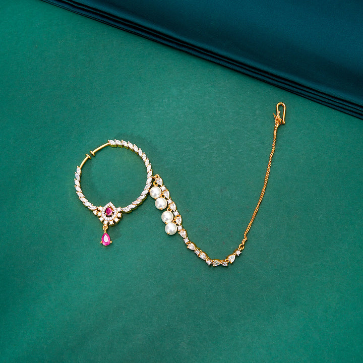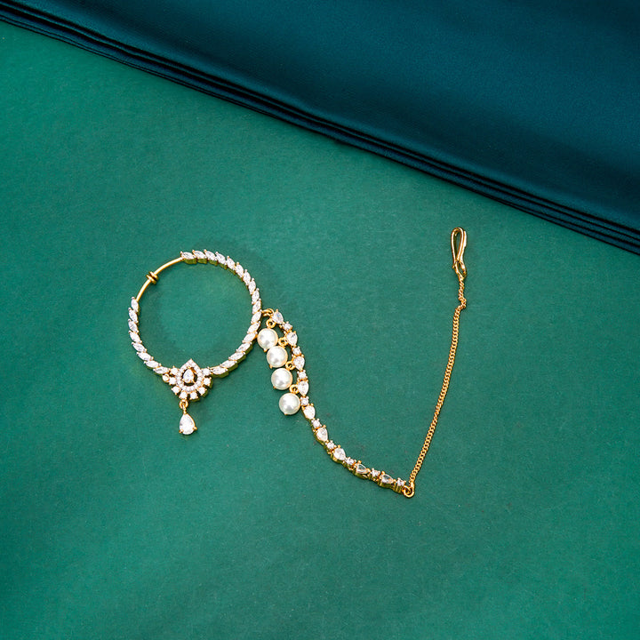 436192 Cz Pearl Nose Ring With 2 Tone Plating