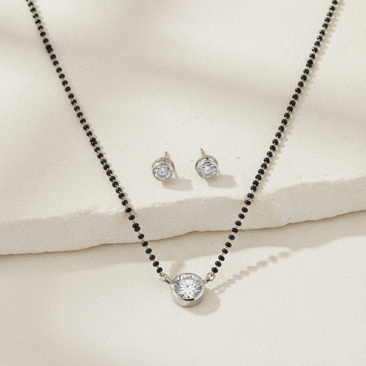 418090 Cz Solitaire Mangalsutra With Rhodium Plating