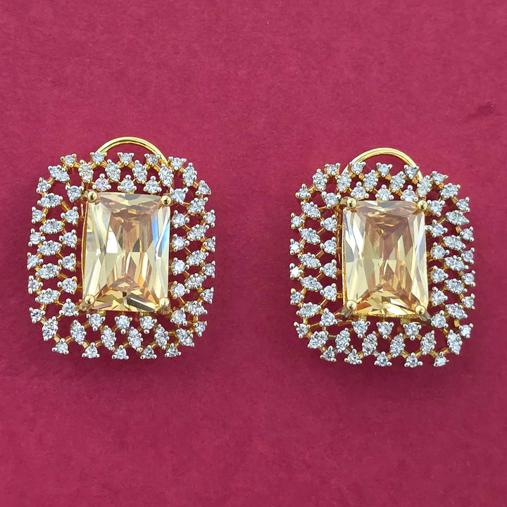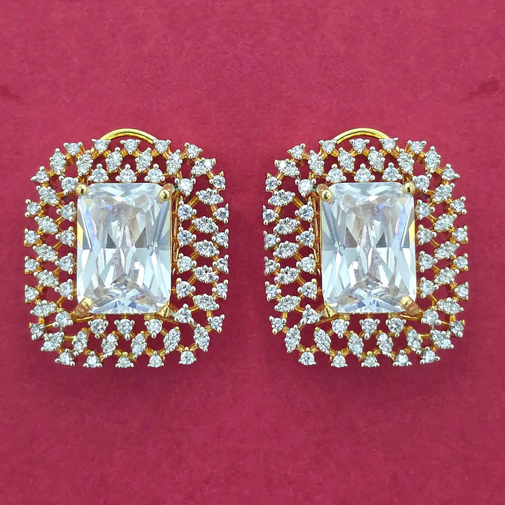 Weight: 13.0 Grams, Height = 25 mm || Width = 22 mm,Classic Tops,2 Tone Plating,American Diamond Earring