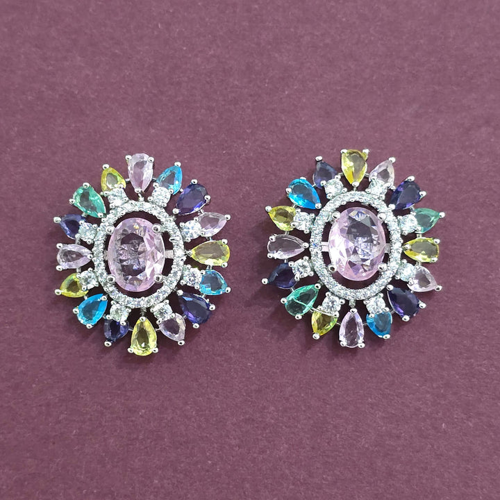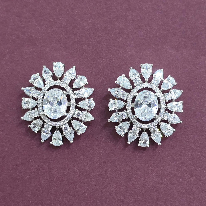 Weight: 11.0 Grams, Height = 26 Mm || Width = 22 Mm,Classic Tops,Rhodium Plating,American Diamond Earring