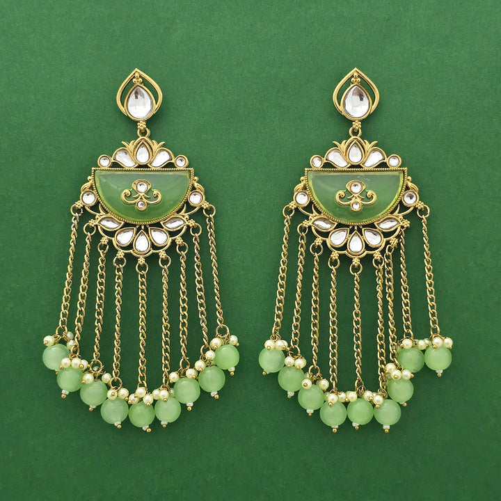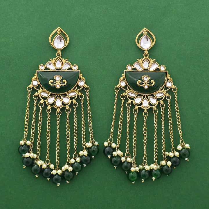 Weight: 45.0 Grams, Height = 115 mm || Width = 60 mm,Beads Earring,Mehndi Plating,Indo Western Earring
