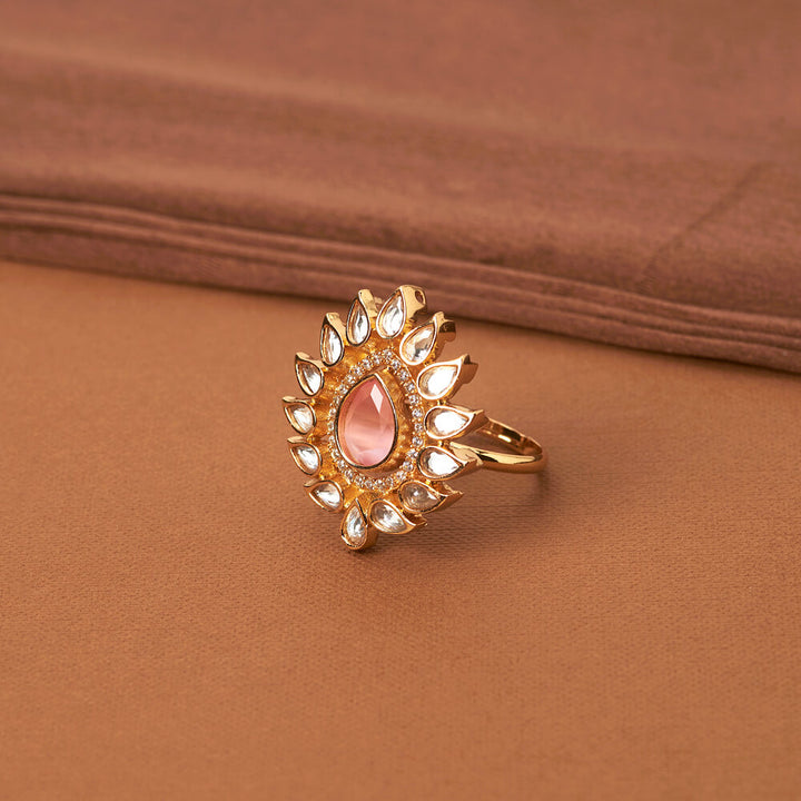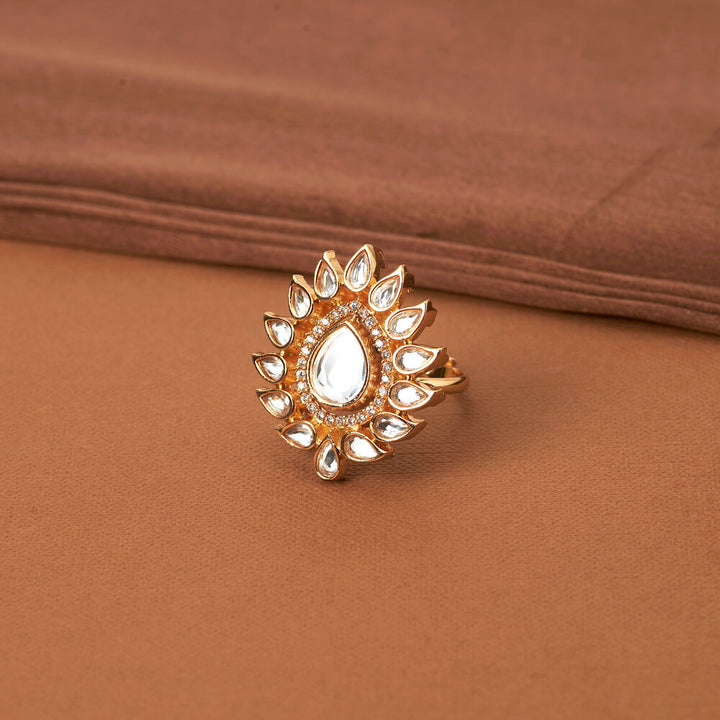 352123 Kundan Adjustable Ring With Gold Plating