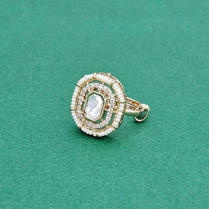 Weight: 6.0 Grams, Height = 20 mm || Width = 18 mm,Pearl Ring,Gold Plating,Kundan Ring