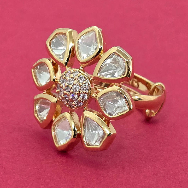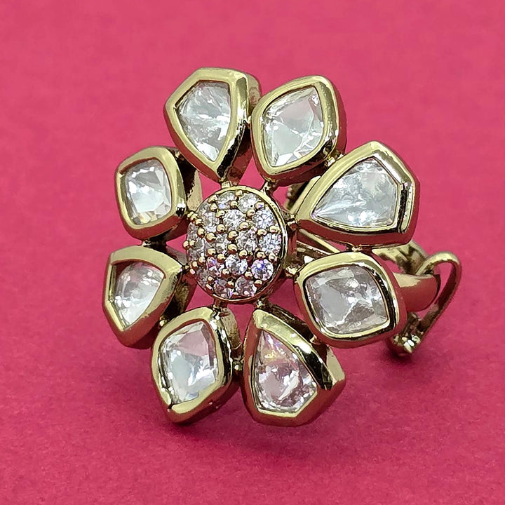 352381 Kundan Adjustable Ring With Mehndi Carat Plating