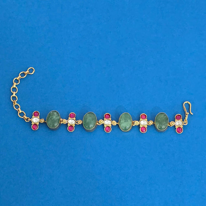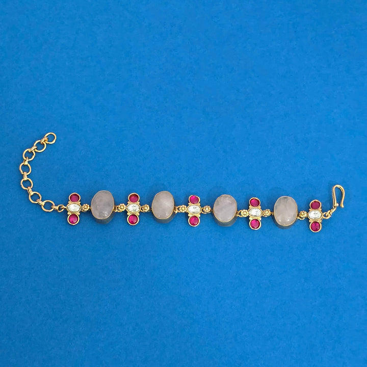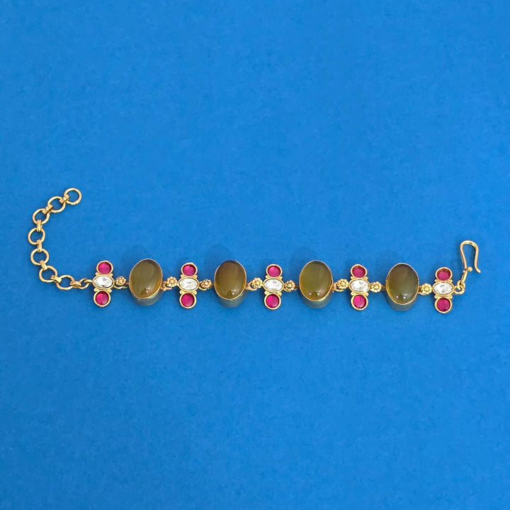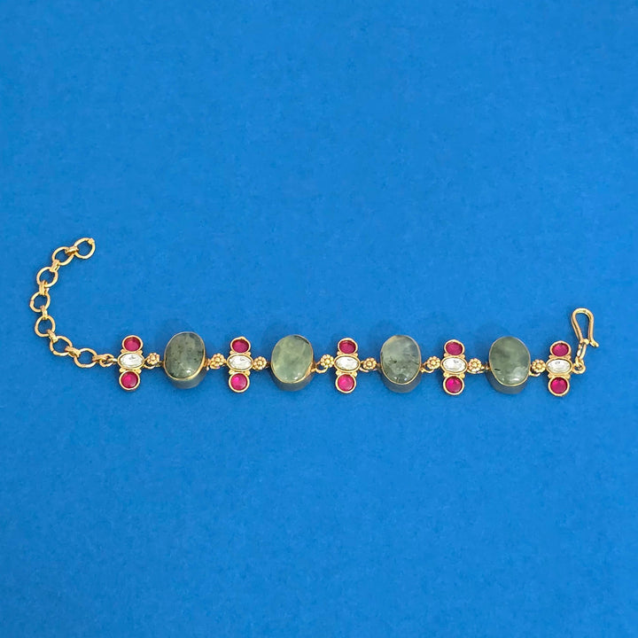 Weight: 17.0 Grams, Length = 7.5 Inch,Adjustable Bracelet,Gold Plating,Kundan Bracelet