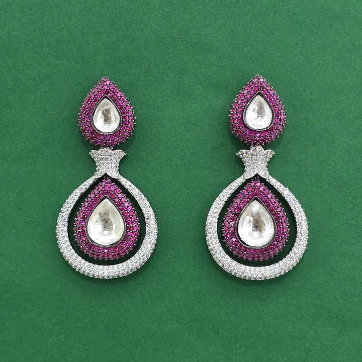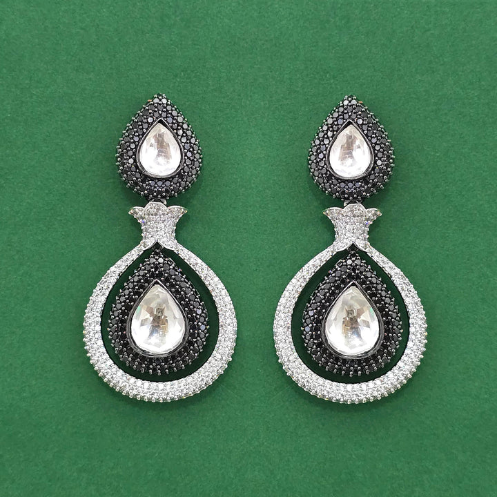 Weight: 23.0 Grams, Height = 52 mm || Width = 28 mm,Bollywood Look,Black Plating,Kundan Earring