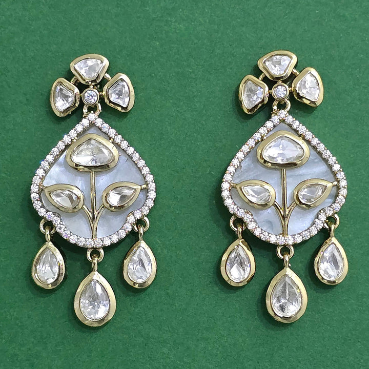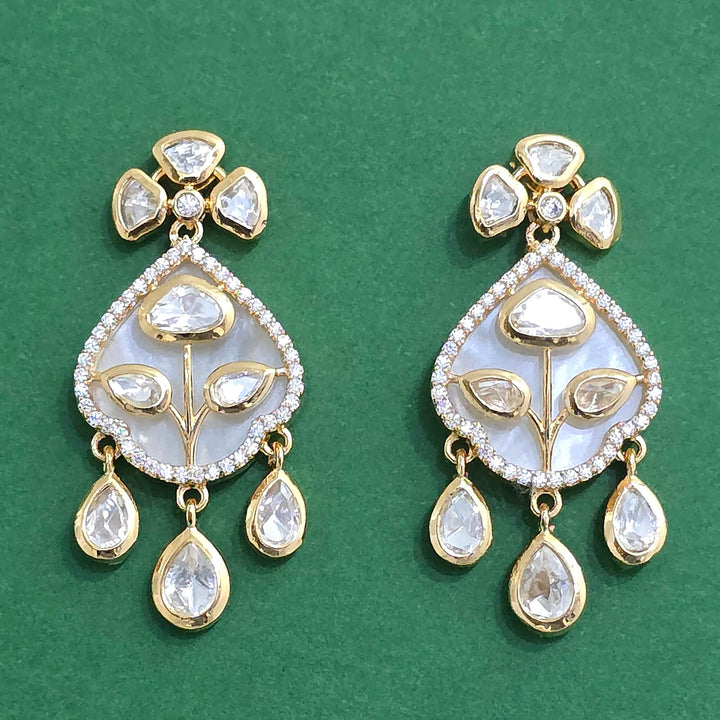 Weight: 13.0 Grams, Height = 42 mm || Width = 20 mm,Mother Of Pearl Earring,Carat Plating,Mehndi Plating,Kundan Earring