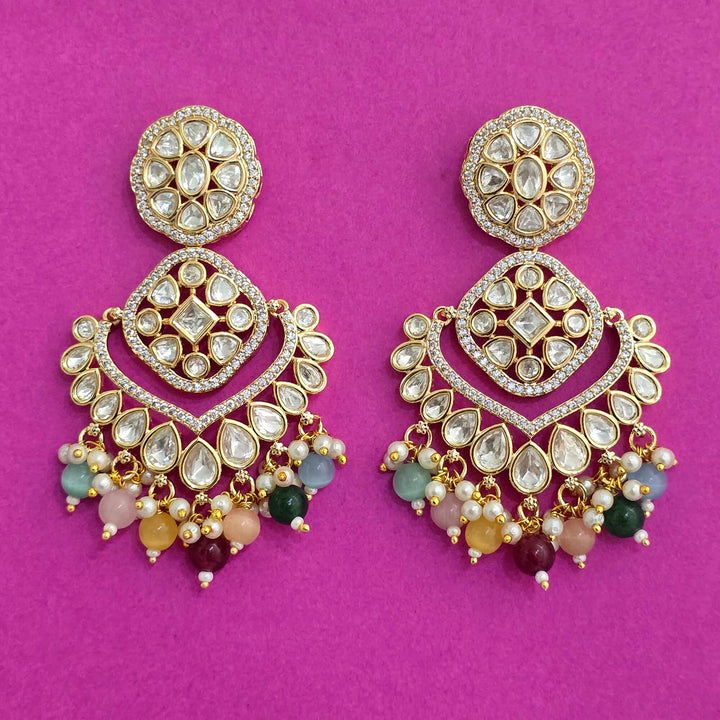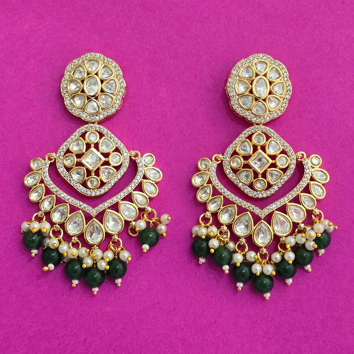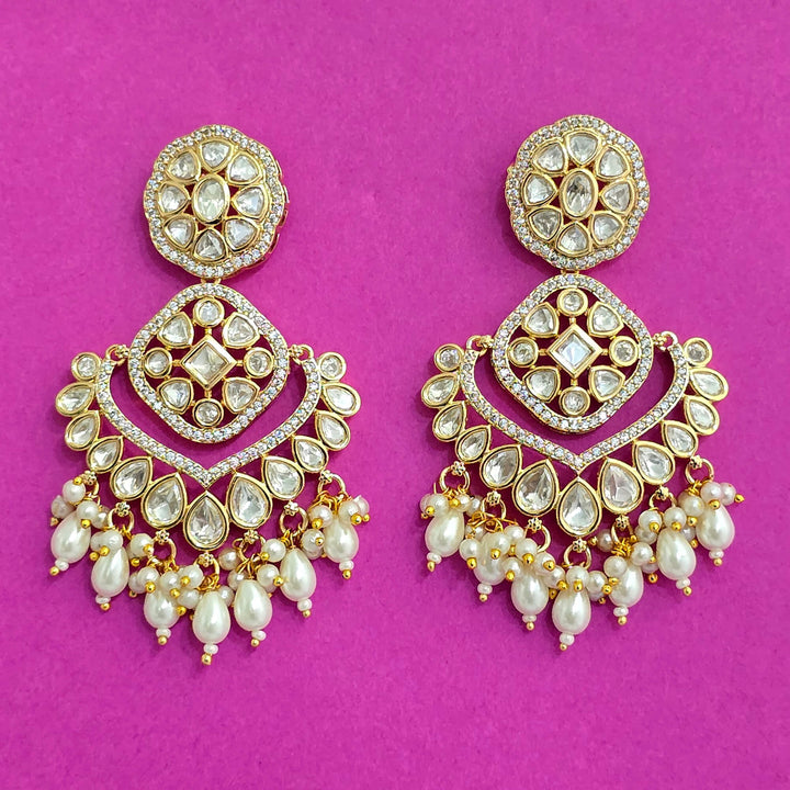 Weight: 41.0 Grams, Handmade Design,Height = 75 mm || Width = 42 mm,Gold Plating,Kundan Earring