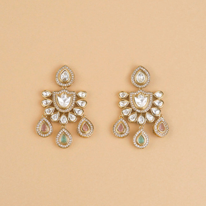 Weight: 30.0 Grams, Height = 55 mm || Width = 37 mm,Bollywood Look,Mehndi Plating,Kundan Earring