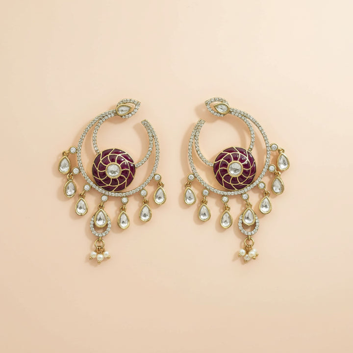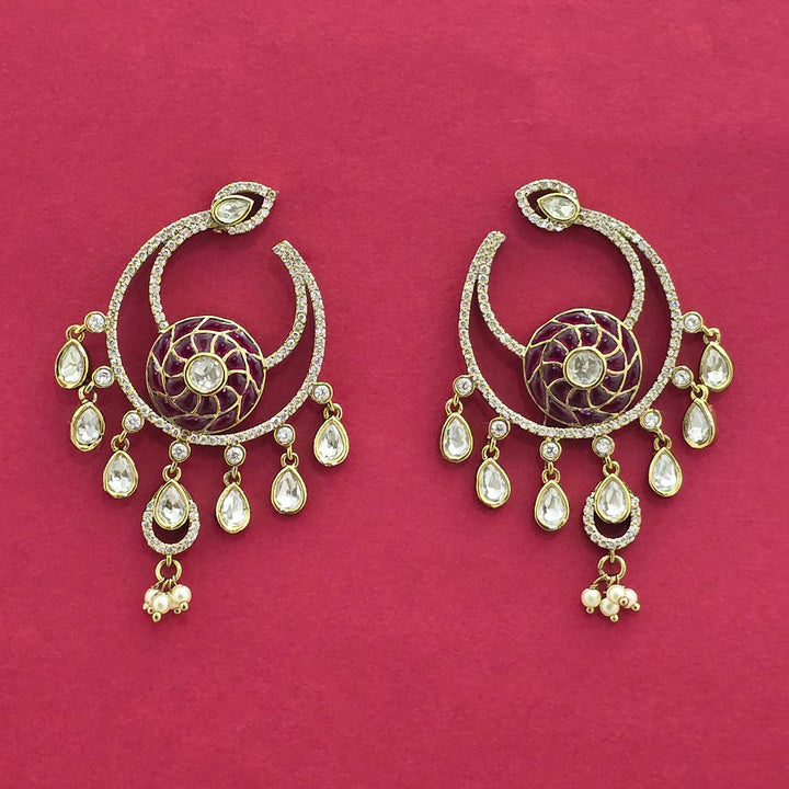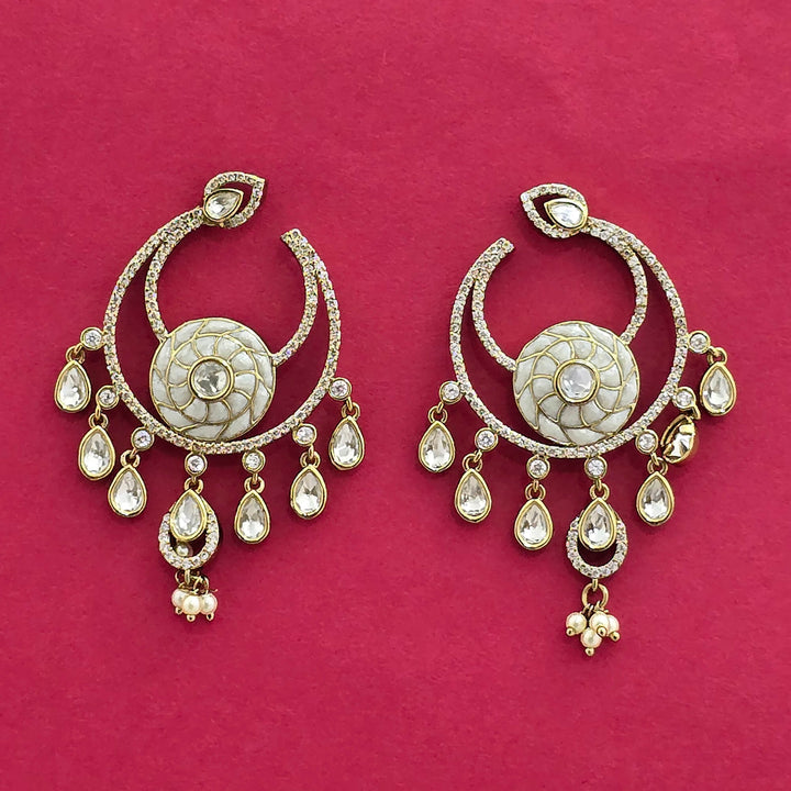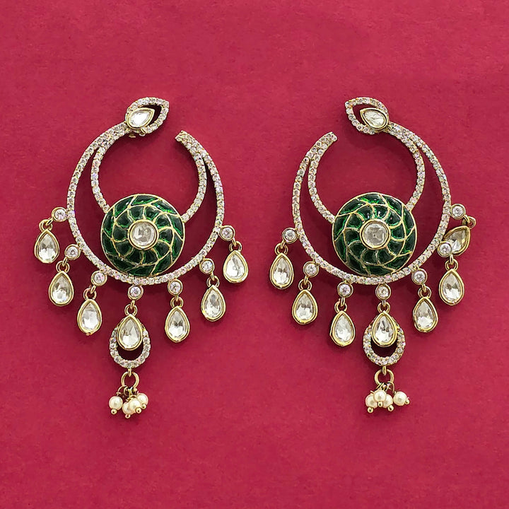 Weight: 19.0 Grams, Height = 62 mm || Width = 42 mm,Chand Style,Mehndi Plating,Kundan Earring