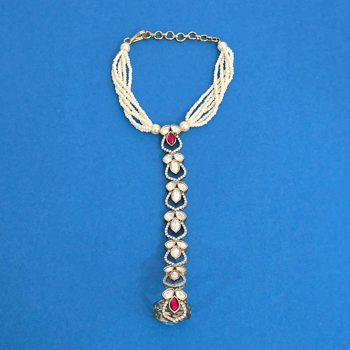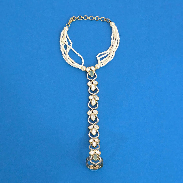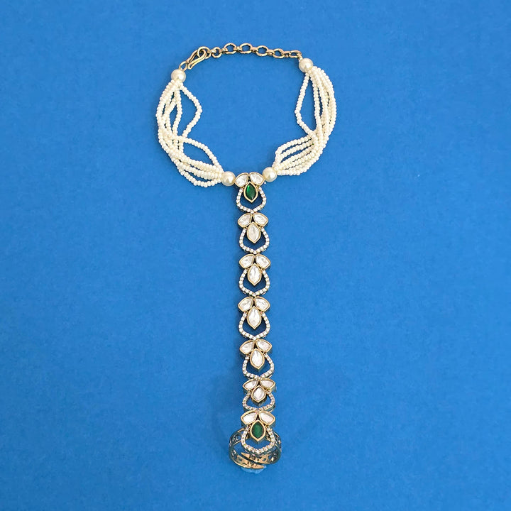 Weight: 22.0 Grams, Adjustable,Single Hath Pan,Mehndi Plating,Kundan Hath Panja