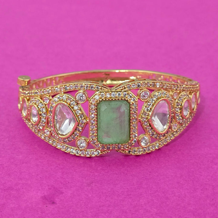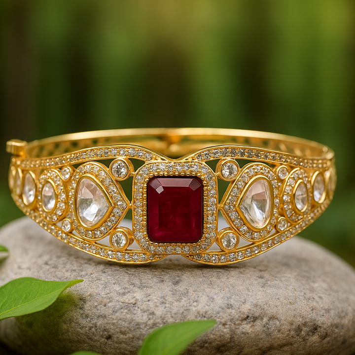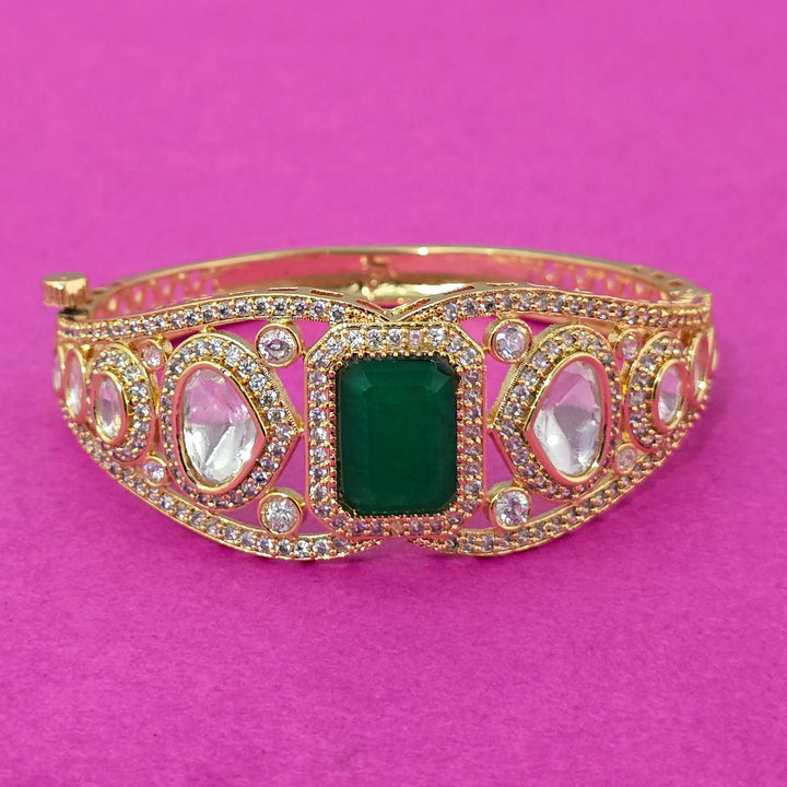 Weight: 24.0 Grams, Height = 47 mm || Width = 57 mm,Openable Kada,Gold Plating,Kundan Kada