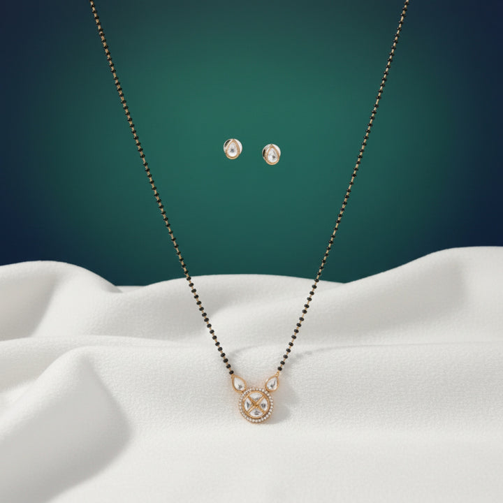 Weight: 10.0 Grams, Pendant Height = 15 Mm || Width = 20 Mm,Earring Height = 8 Mm || Width = 5 Mm,Length = 18 Inch,Kundan Mangal Sutra