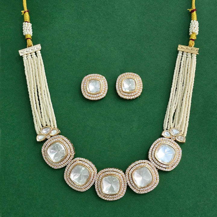 352609 Kundan Classic Necklace Set With Carat Gold Plating