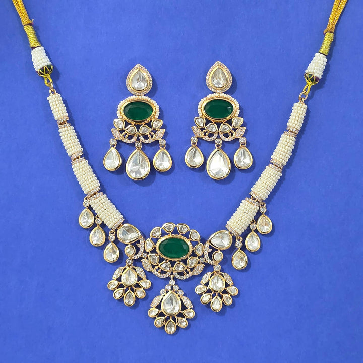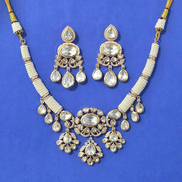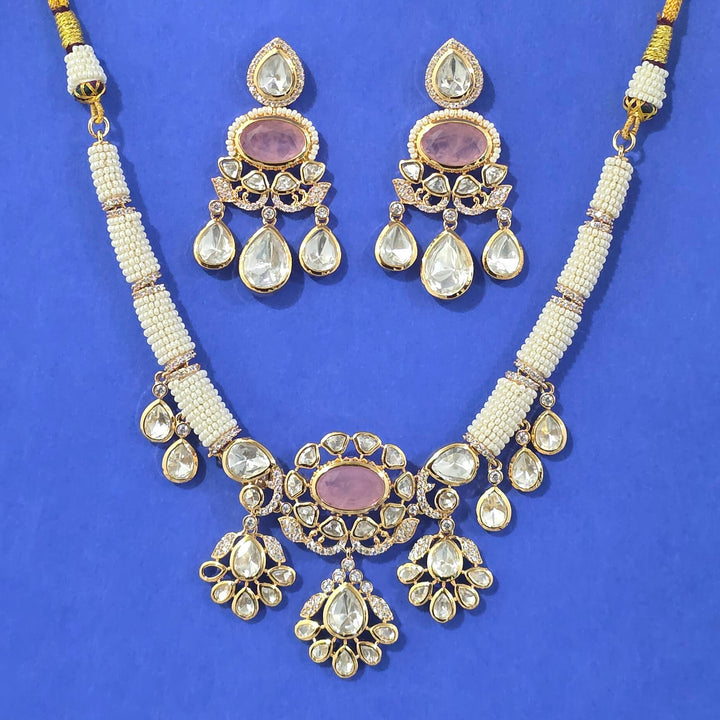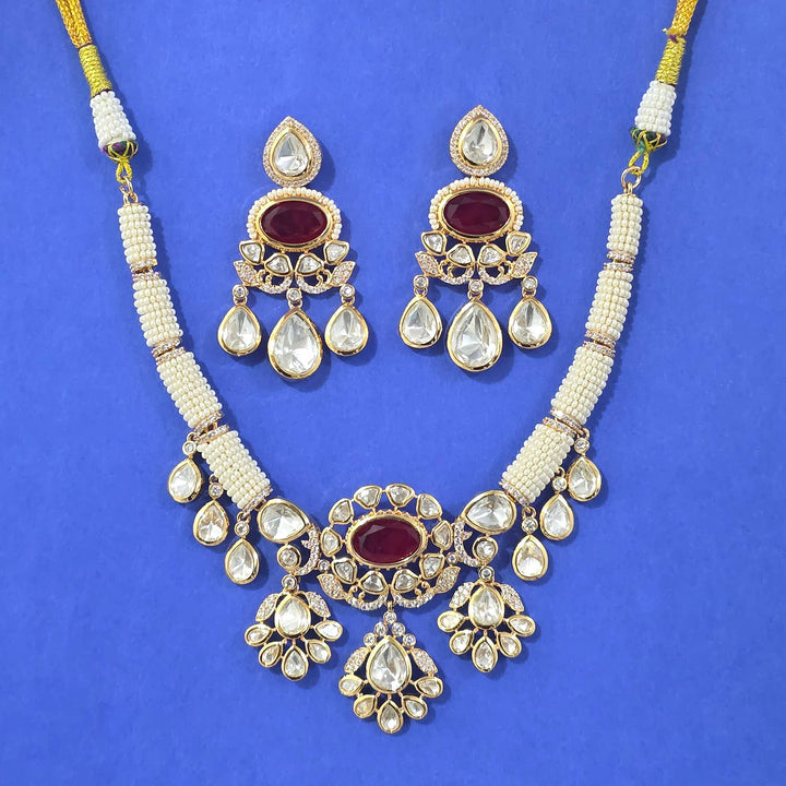 352644 Kundan Classic Necklace Set With Carat Gold Plating