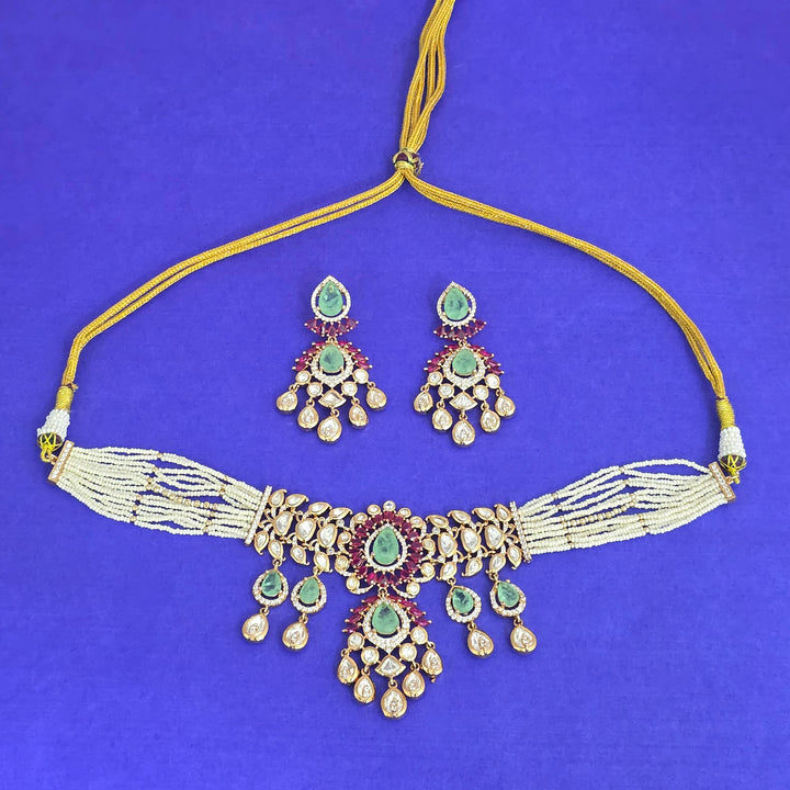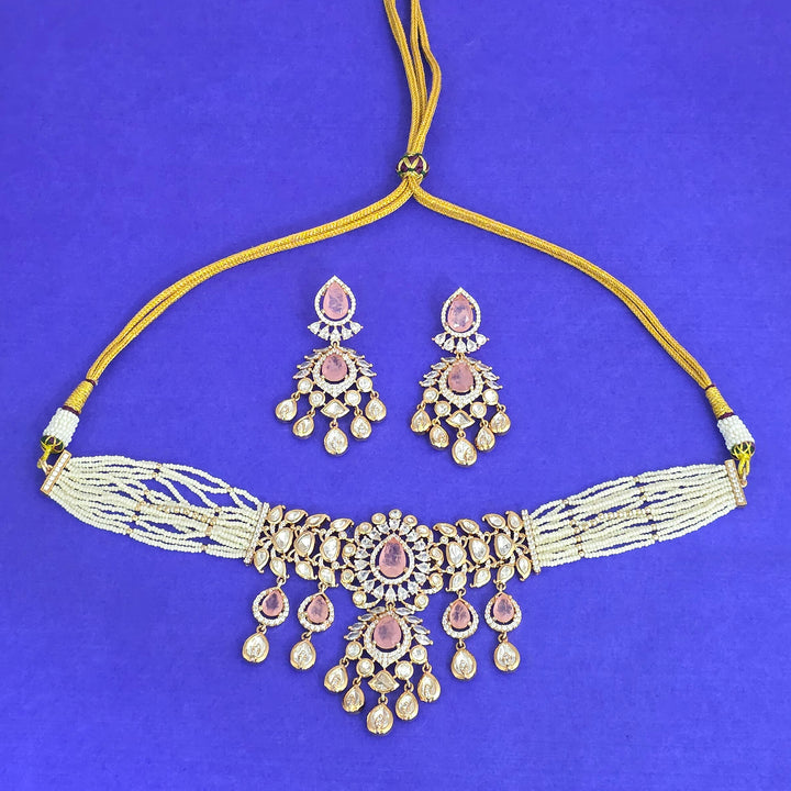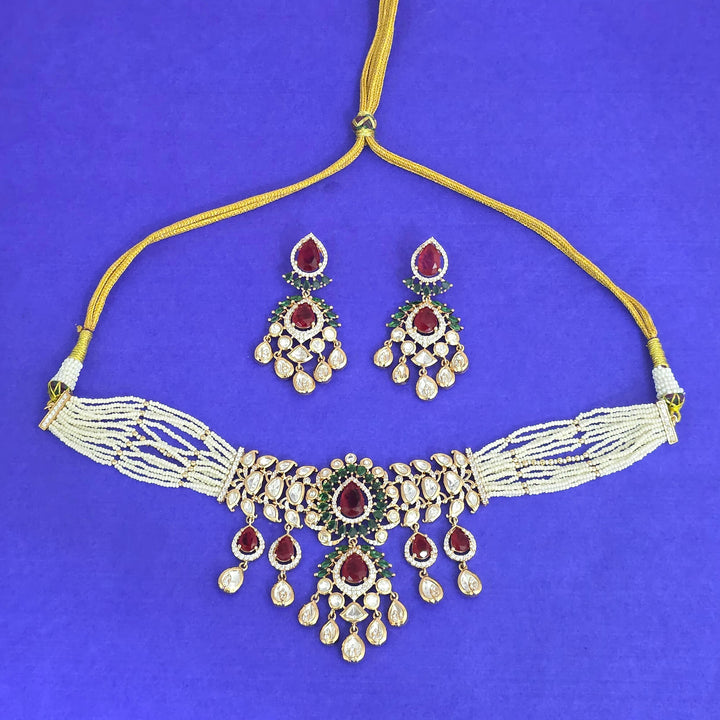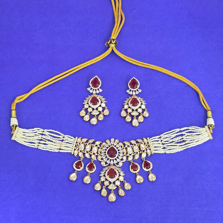 352702 Kundan Classic Necklace Set With Carat Gold Plating