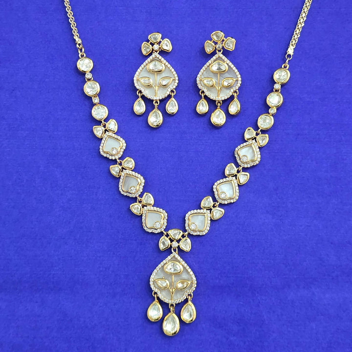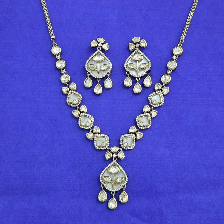 352688 Kundan Classic Necklace Set With Carat Mehndi Plating