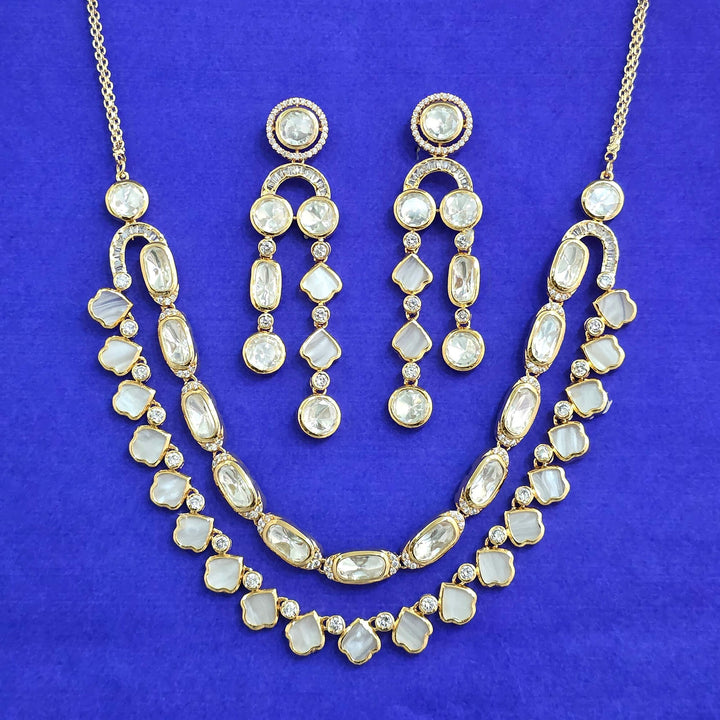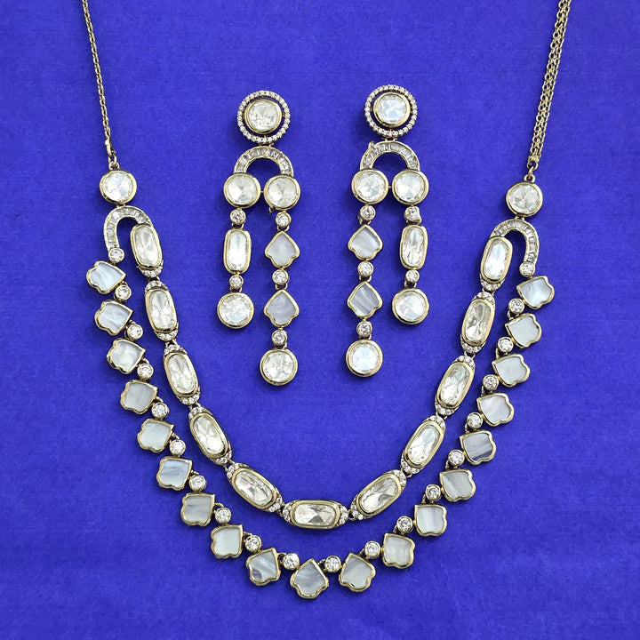352700 Kundan Classic Necklace Set With Carat Mehndi Plating