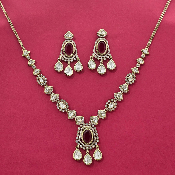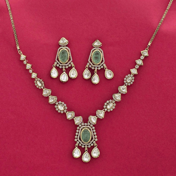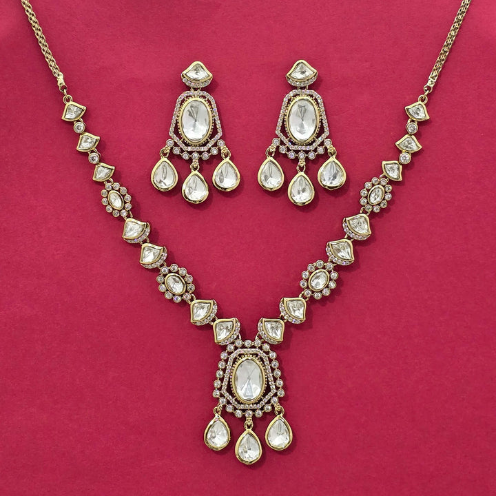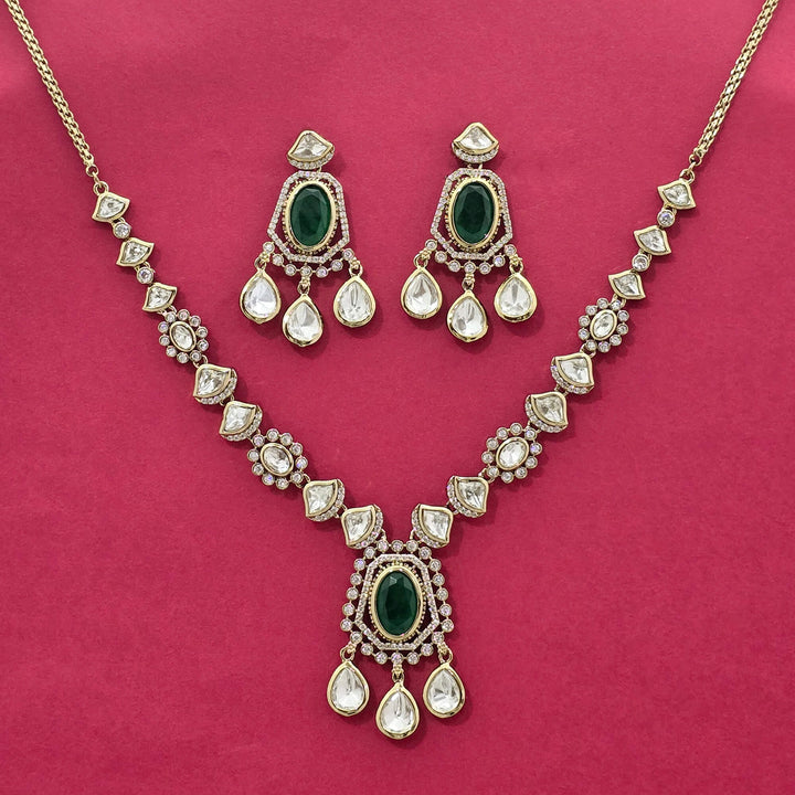 352376 Kundan Classic Necklace Set With Mehndi Plating