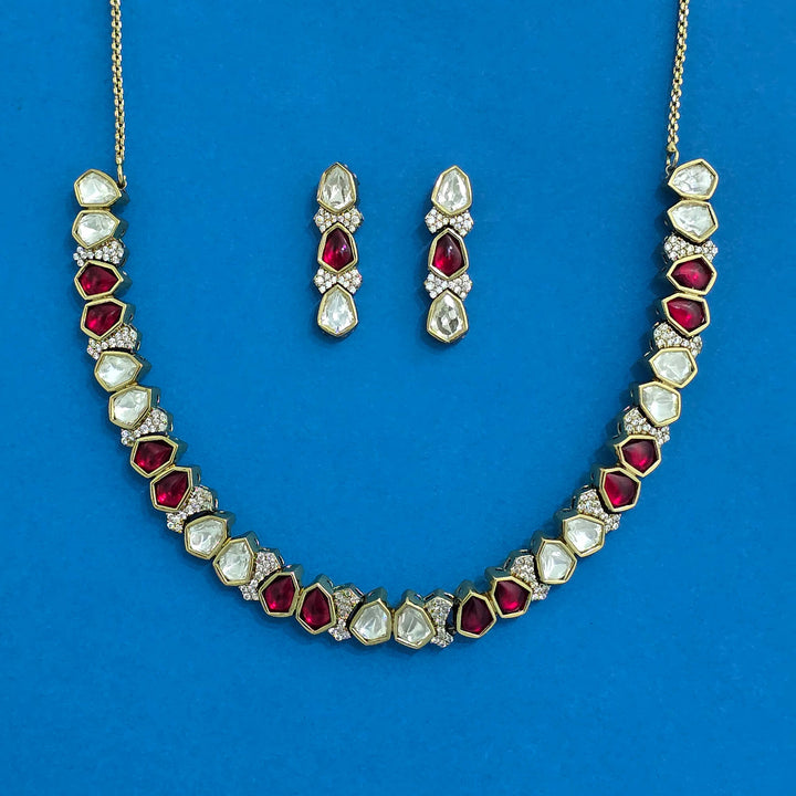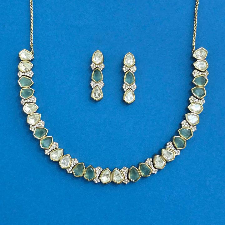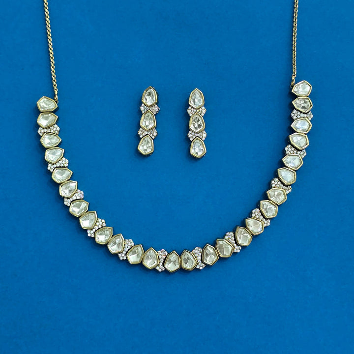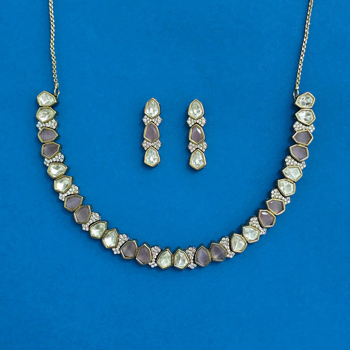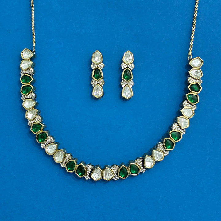 352467 Kundan Classic Necklace Set With Mehndi Plating