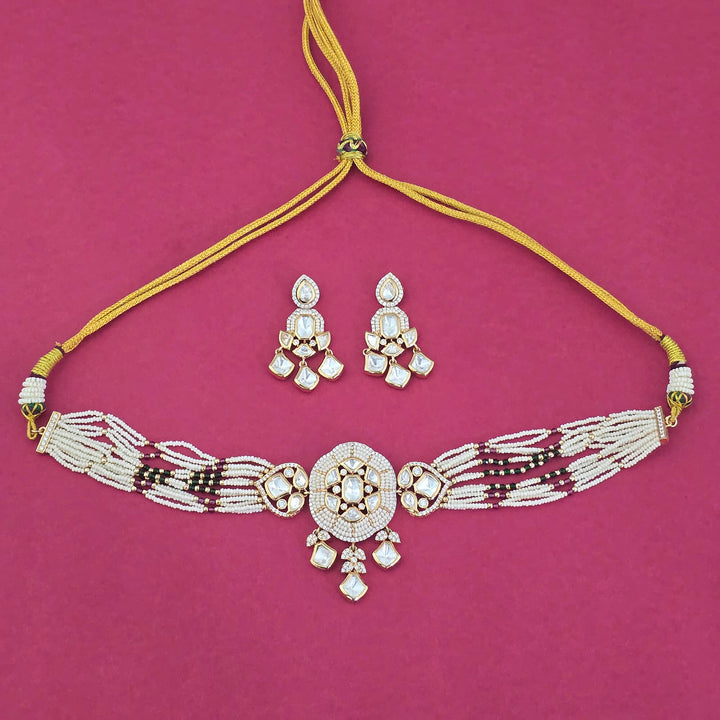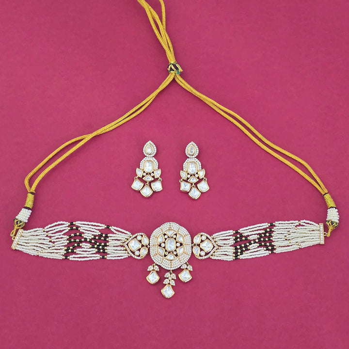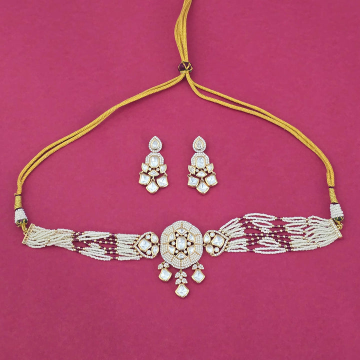 Weight: 52.0 Grams, Earring Height = 45 mm || Width = 28 mm,Regular Size And Adjustable,Choker Necklace,Gold Plating,Kundan Necklace Set