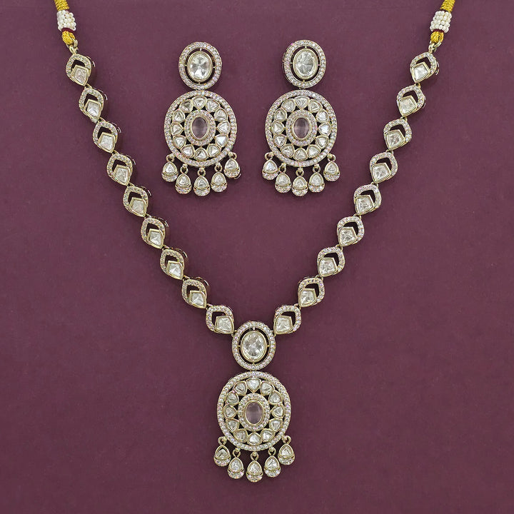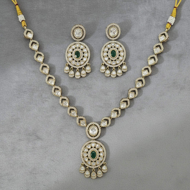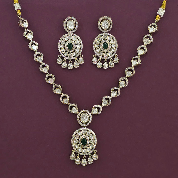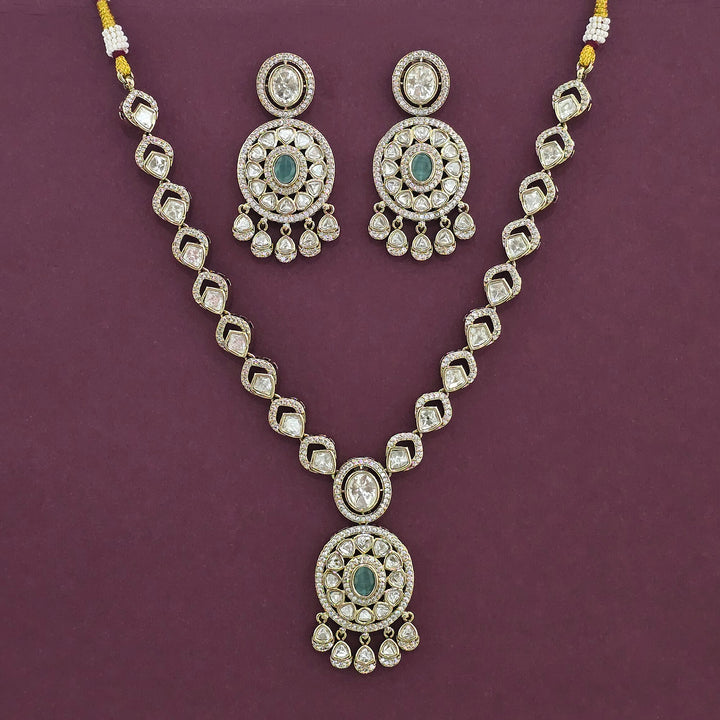 Weight: 69.0 Grams, Earring Height = 58 mm || Width = 30 mm,Regular Size And Adjustable,Mehndi Plating,Kundan Necklace Set