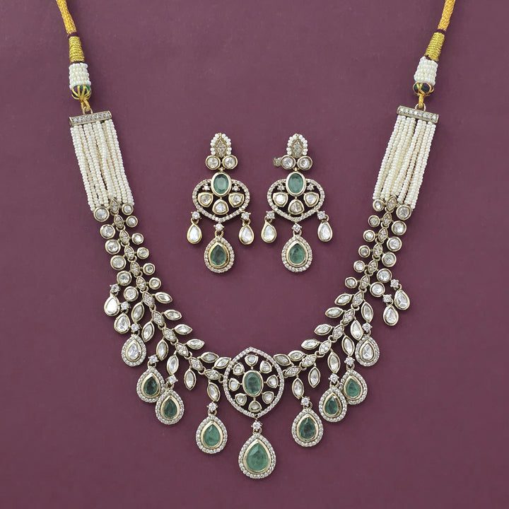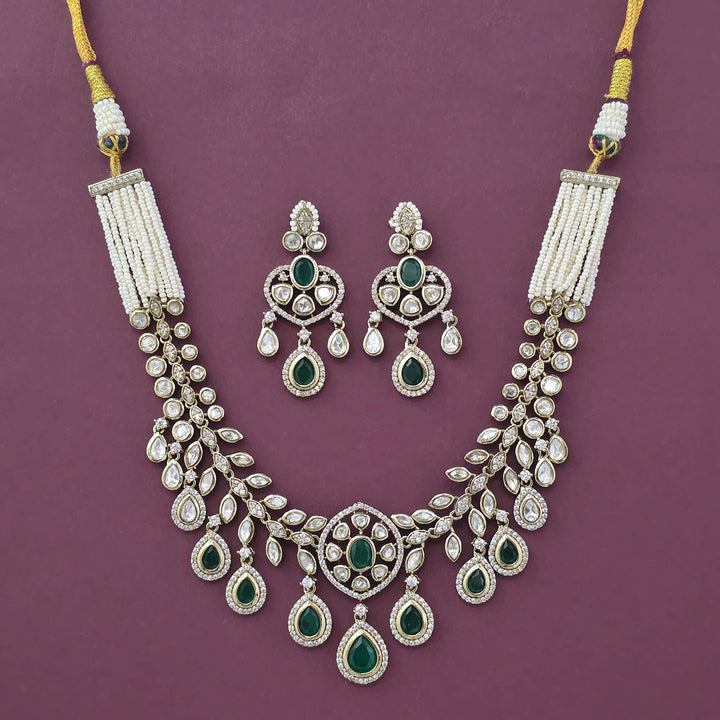 Weight: 63.0 Grams, Earring Height = 50 mm || Width = 26 mm,,Mehndi Plating,Kundan Necklace Set