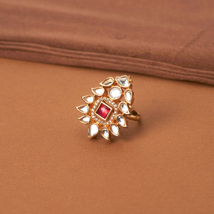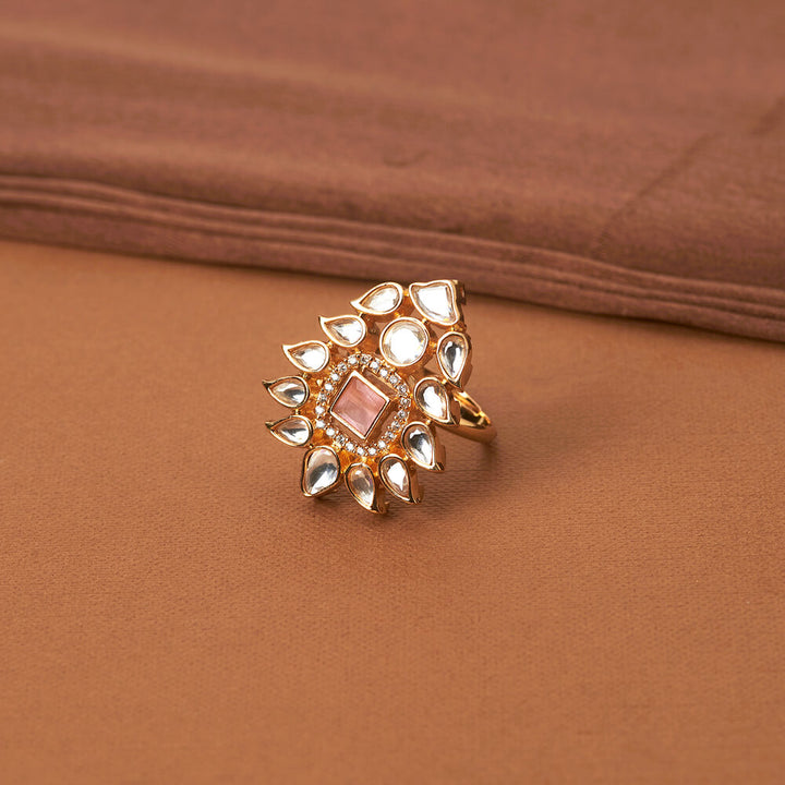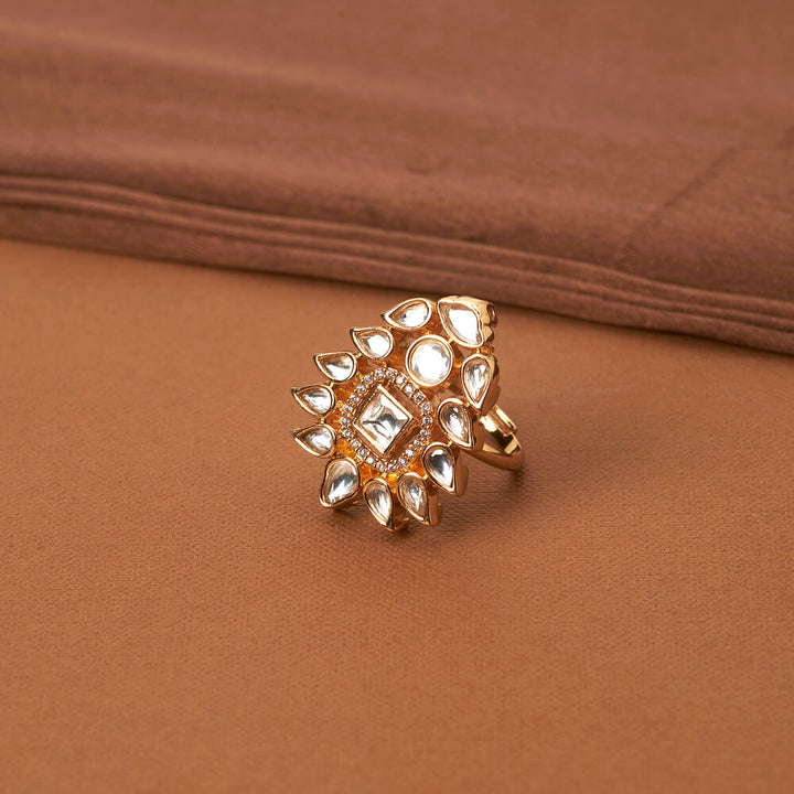 352122 Kundan Classic Ring With Gold Plating