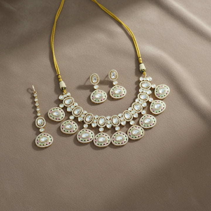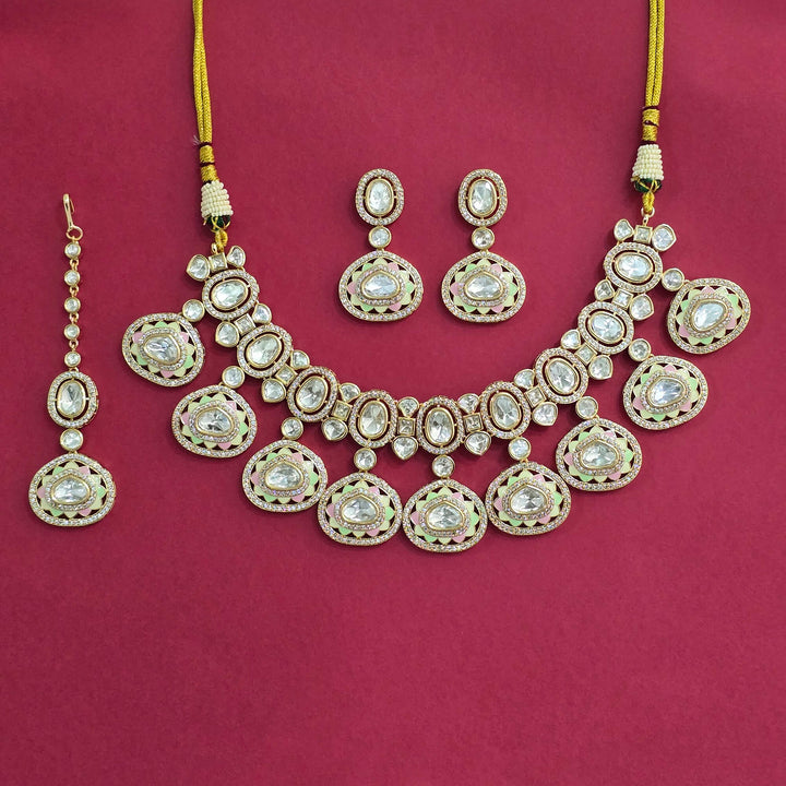 303142 Kundan Meenakari Necklace With Carat Gold Plating