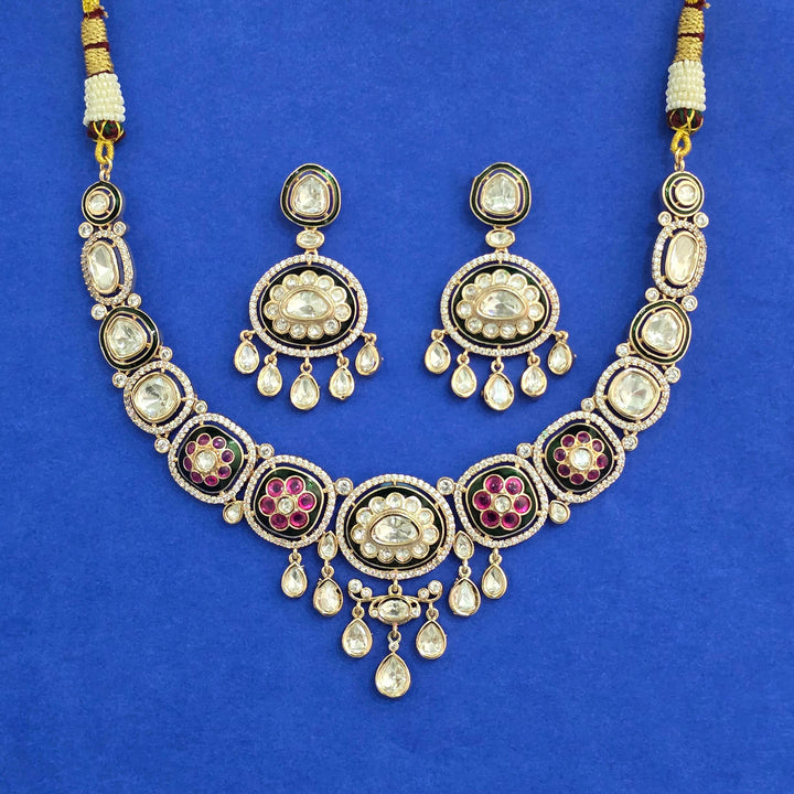 303239 Kundan Meenakari Necklace With Carat Gold Plating