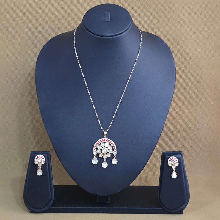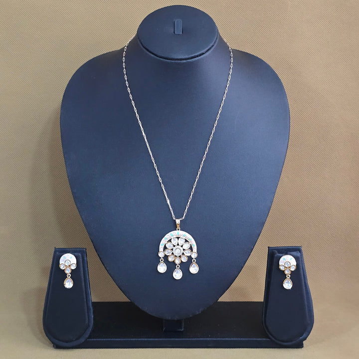 303162 Kundan Meenakari Pendant Set With Carat Gold Plating