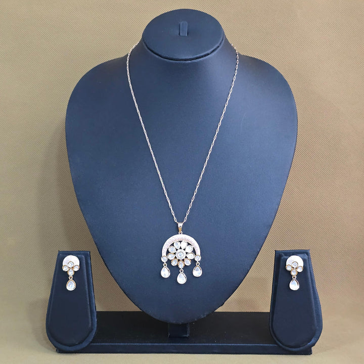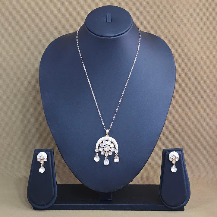 Weight: 19.0 Grams, Pendant Height = 50 mm || Width = 36 mm,Earring Height = 30 mm || Width = 14 mm,Length = 18 Inch,Carat Plating,Kundan Pendant Set