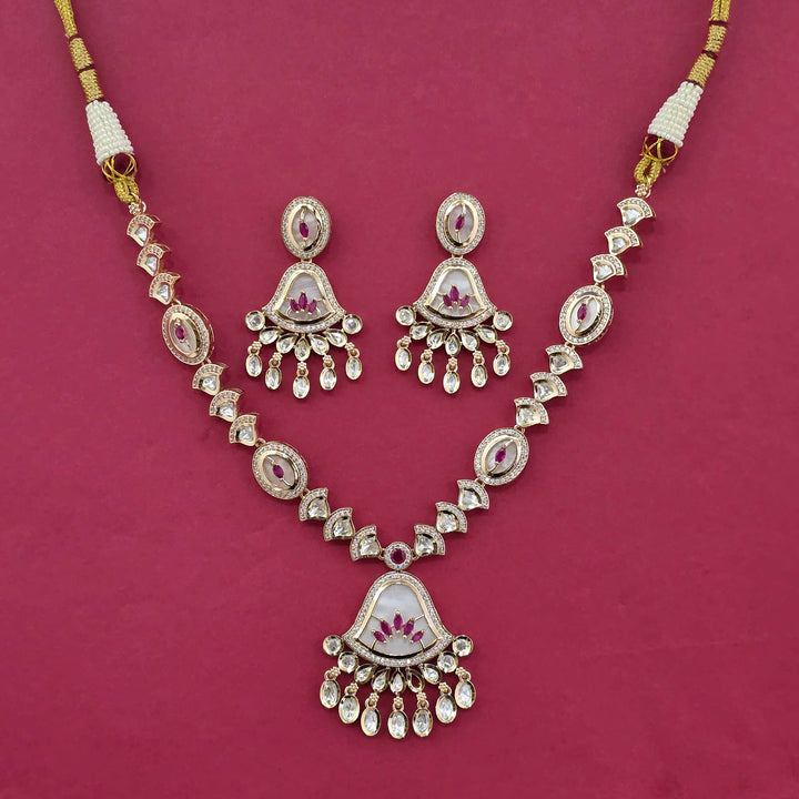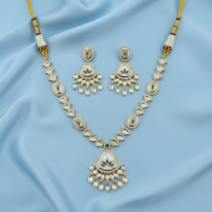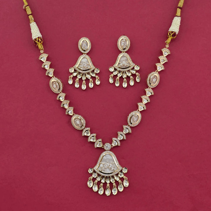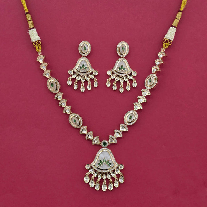 303318 Kundan Mother Of Pearl Necklace With Carat Gold Plating