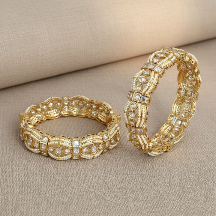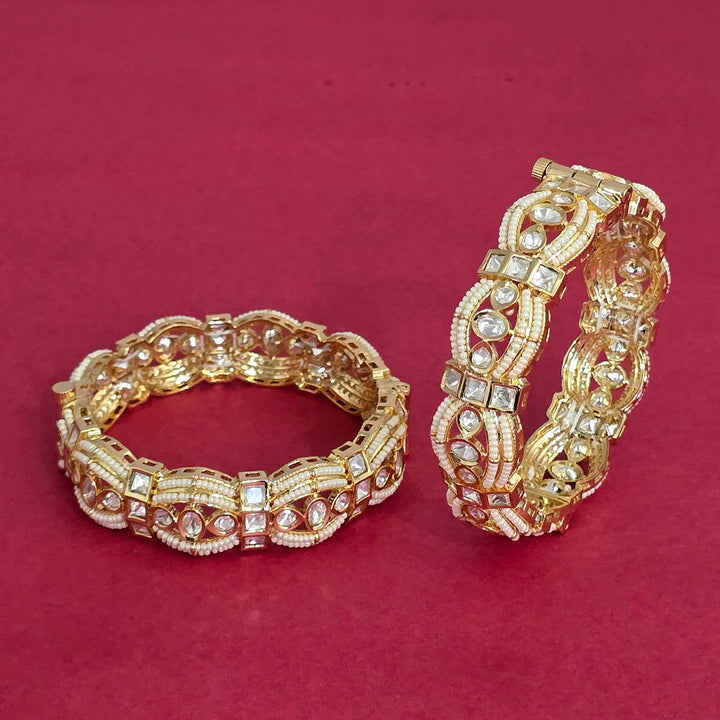 303168 Kundan Moti Bangles With Carat Gold Plating