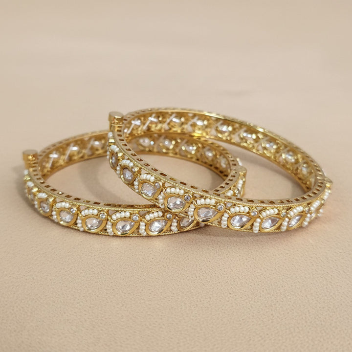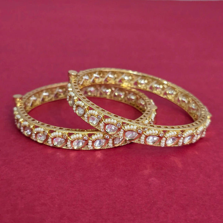 303170 Kundan Moti Bangles With Carat Gold Plating